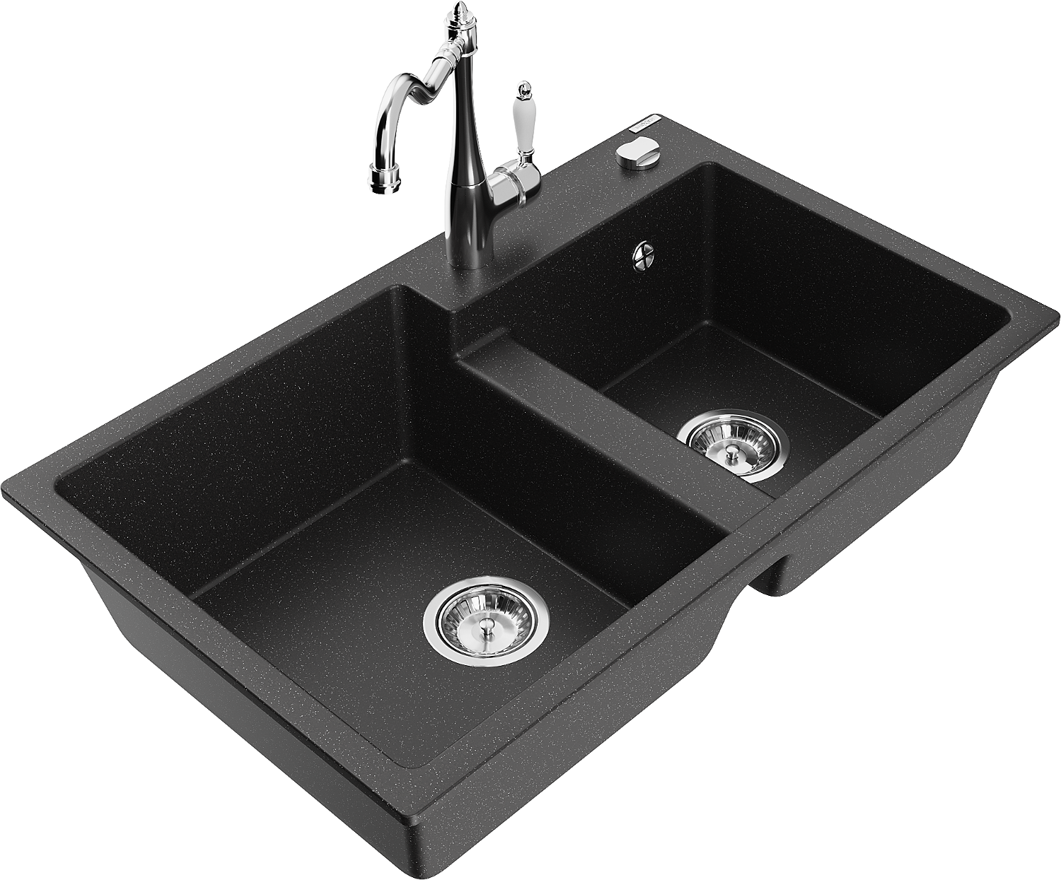 Mexen Tomas 2-Kummer Granit-Spullmëttel mat Kichekran Carla, schwaarz/sëlwermetallesch - 6516-73-670700-00