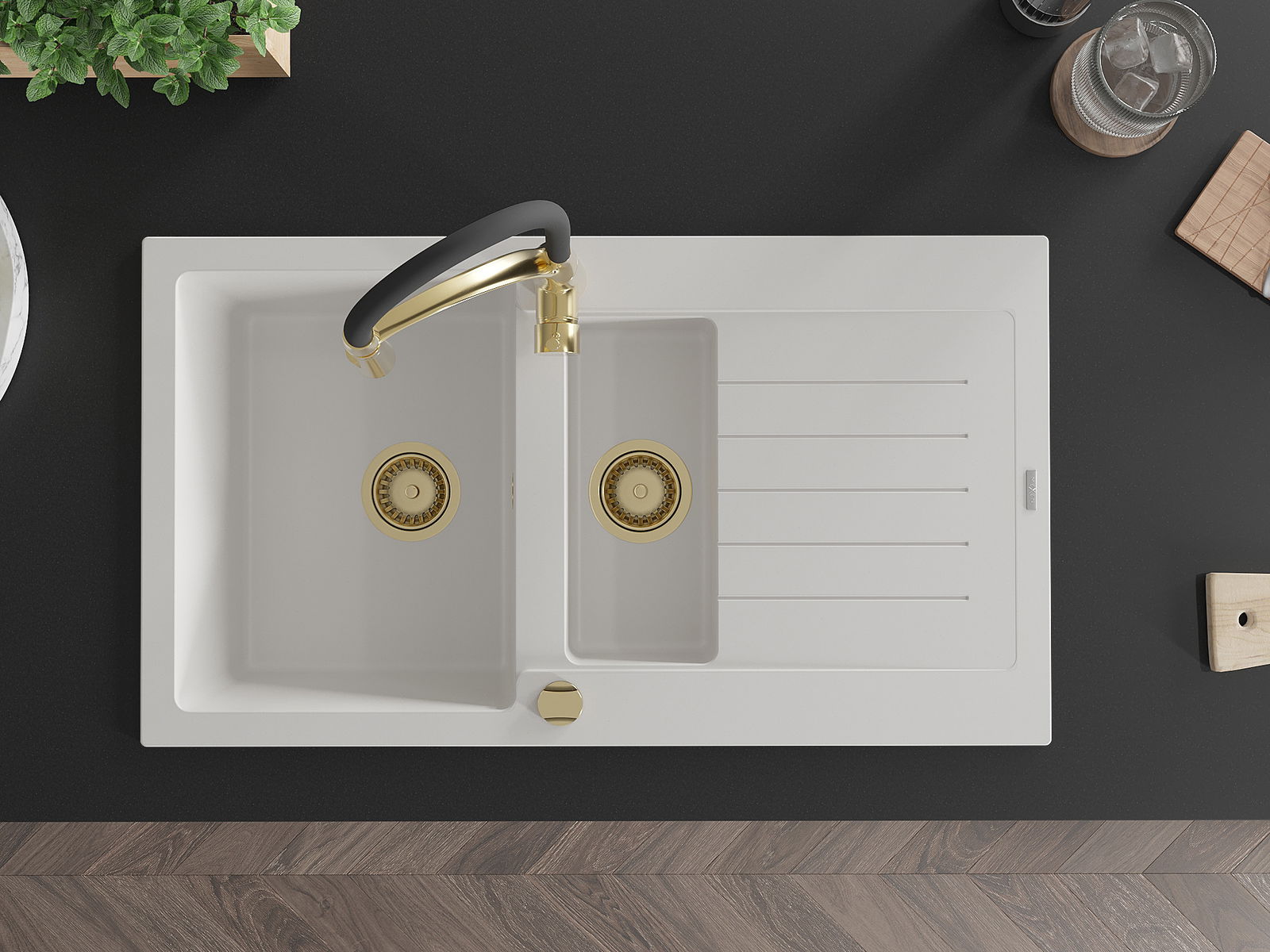 D'Uewerfläch vum Spullstee ass fleck- a verfärbungsresistent, wat se einfach ze botzen mécht an hir Faarf iwwer eng laang Zäit vum Gebrauch behalen léisst. Esthetesch an praktesch Ergänzung fir all Kichen.