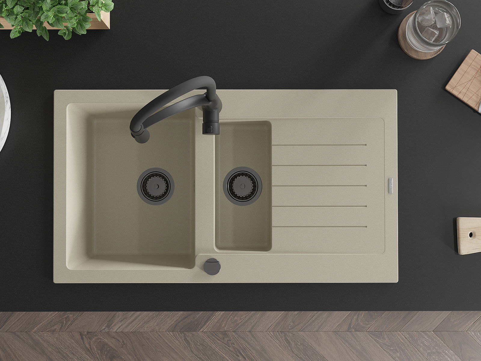 Mexen Matias Granit Spullsteen matten 1,5 Couchn mat Dréchnet an Kichenkran Aster, beige - 6502-69-73450-70-B