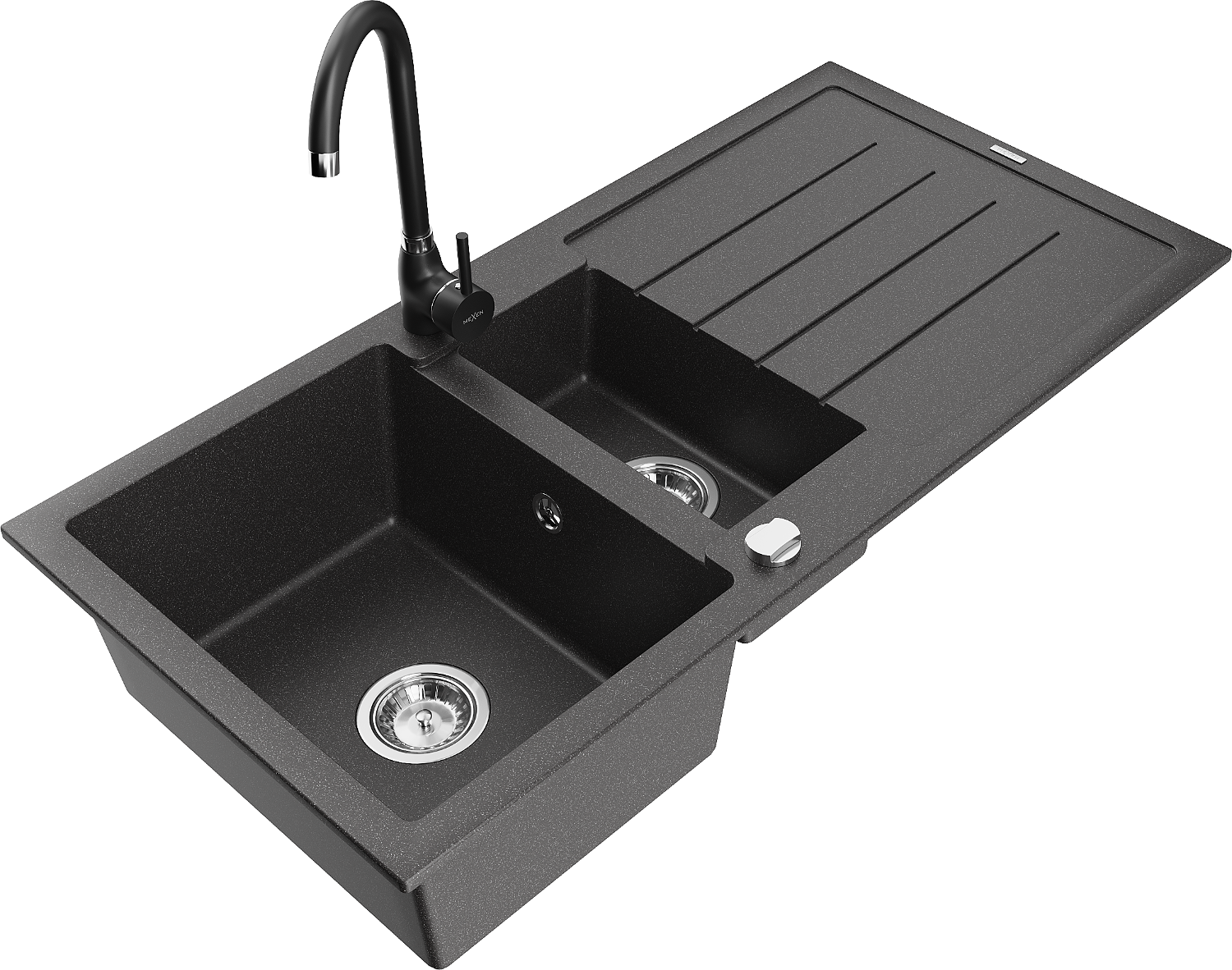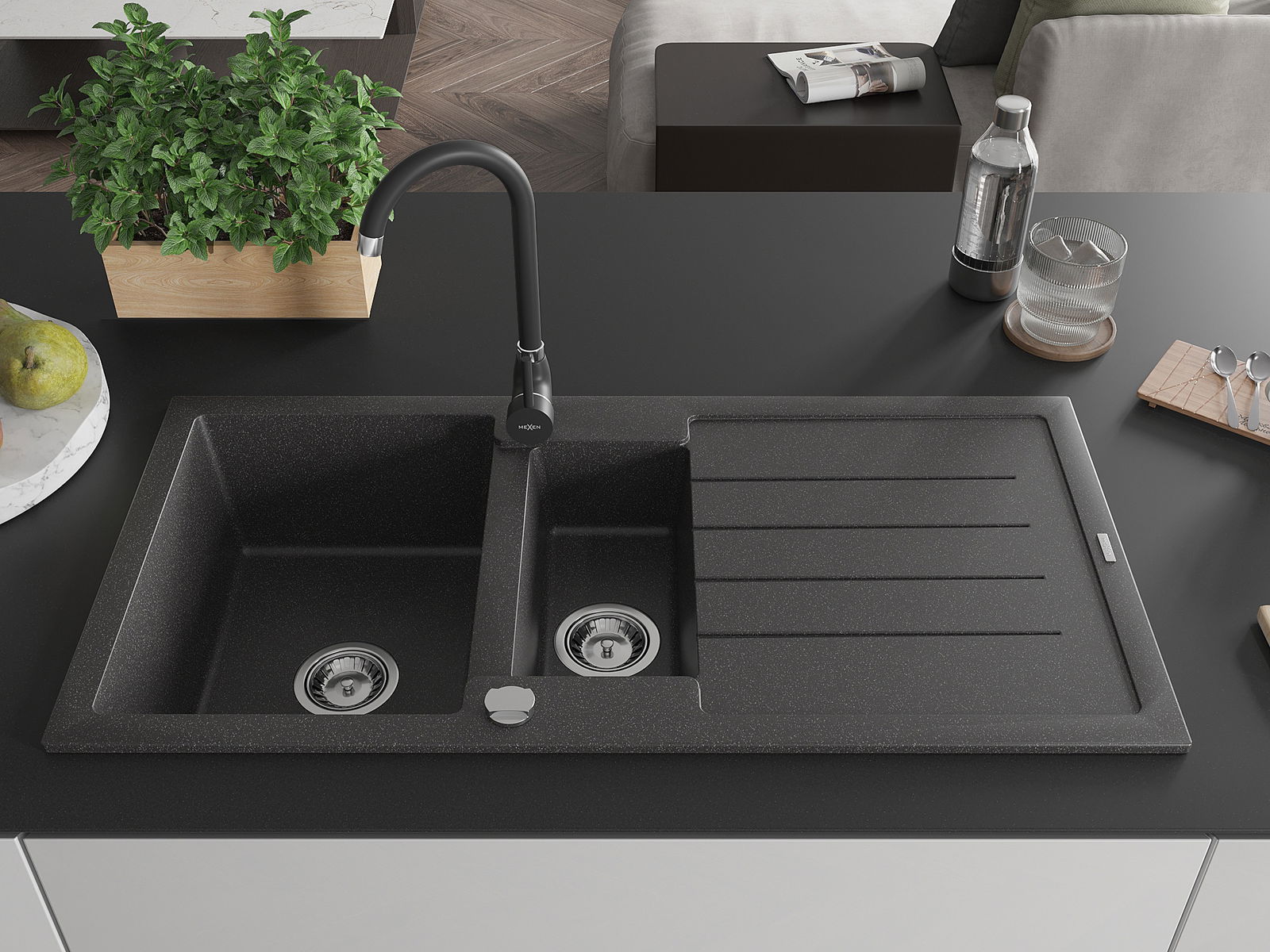 Mexen Andres Granit-Spullsteen 1,5-Kummer mat Oflaus a Kichenkrunn Telma, schwarz gesprenkel - 6515-76-670200-70