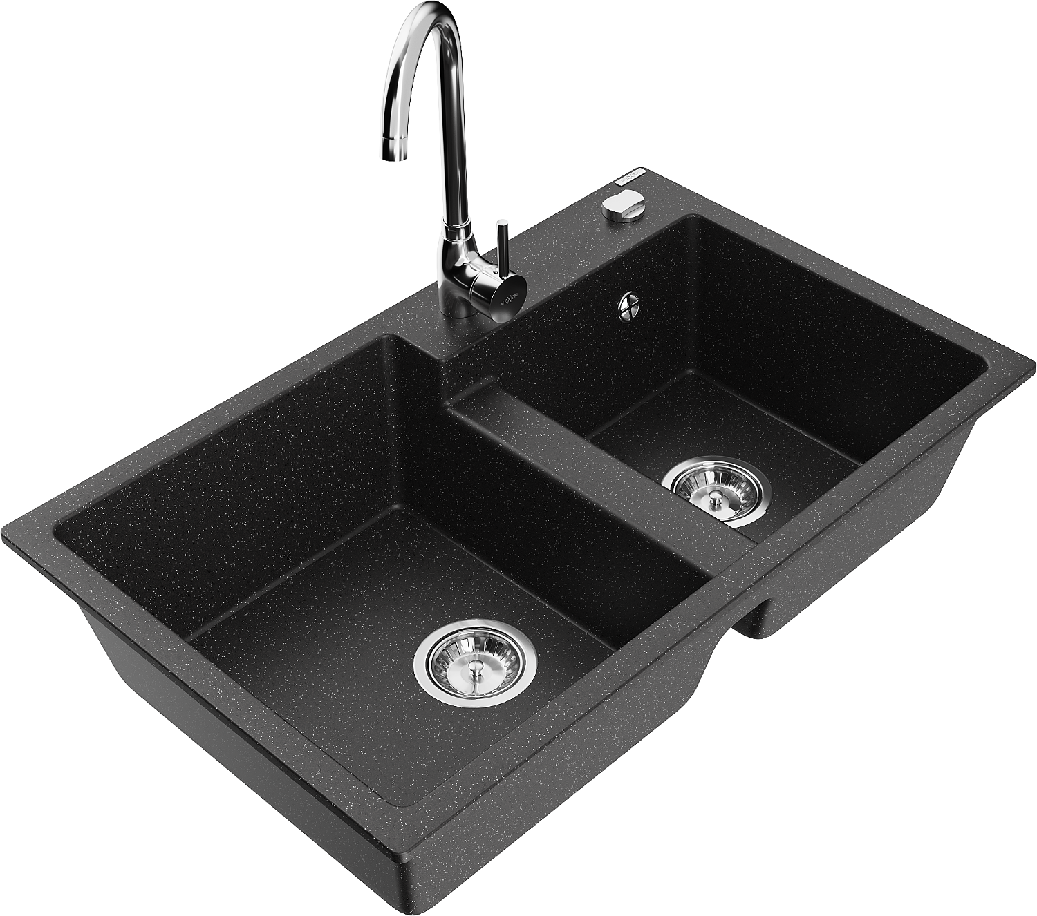 Mexen Tomas granit Ëvier mat 2-Komores mat Kichenbatterie Telma, schwaarz#/sëlwermetall - 6516-73-670200-00
