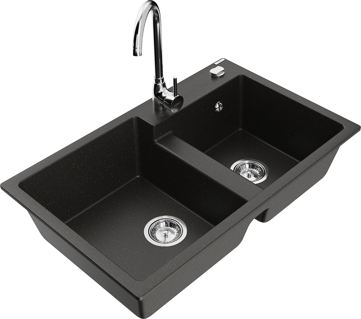 Mexen Tomas granit-Ëmmerschëff mat 2-Schëffer a Kichekraan Telma, schwaarz/gold- metallic - 6516-75-670200-00