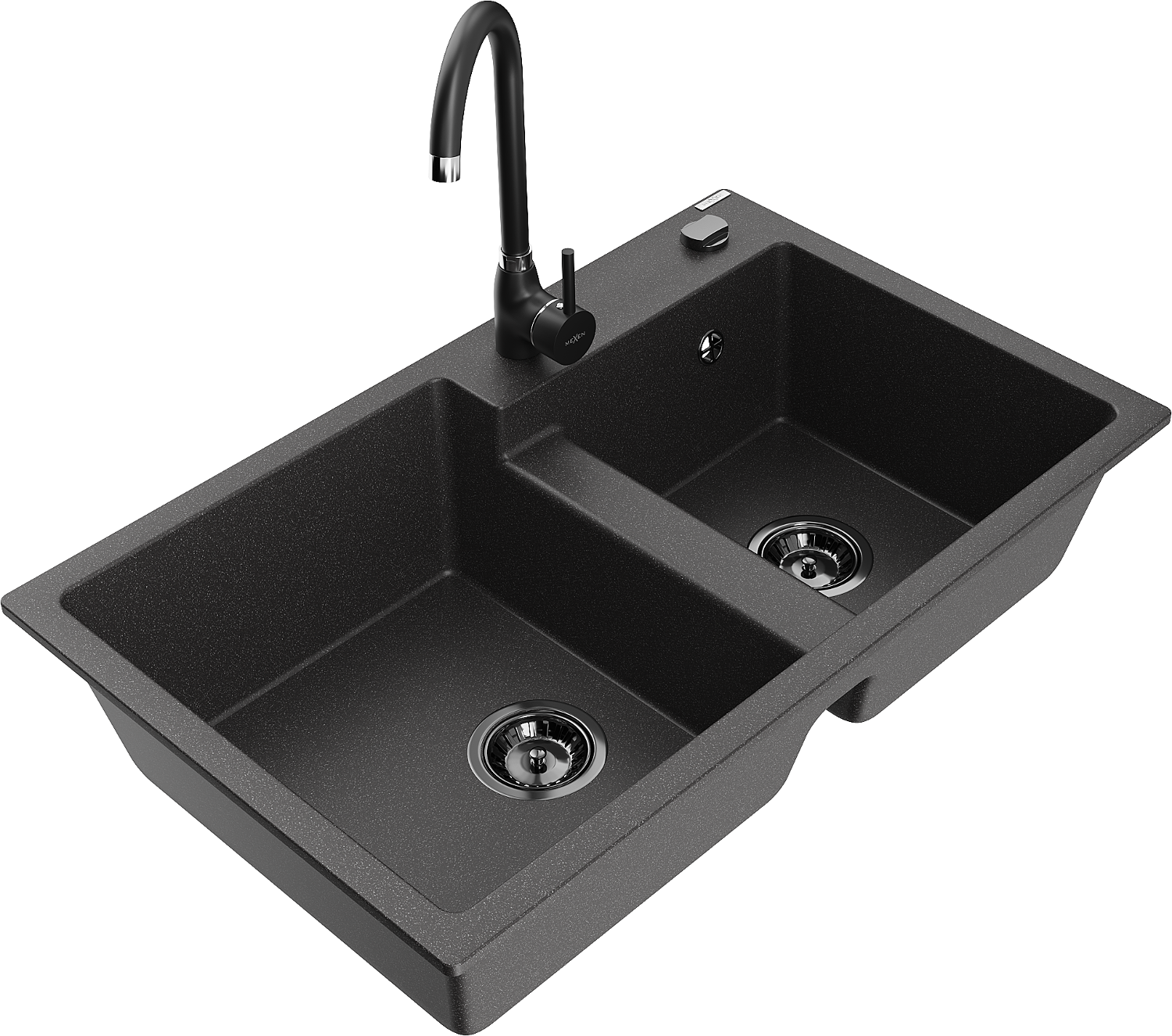Mexen Tomas Granit-Spullsteen mat 2 Schankaaren mat Kichenkran Telma, schwaarz gesprenkelt - 6516-76-670200-70-B