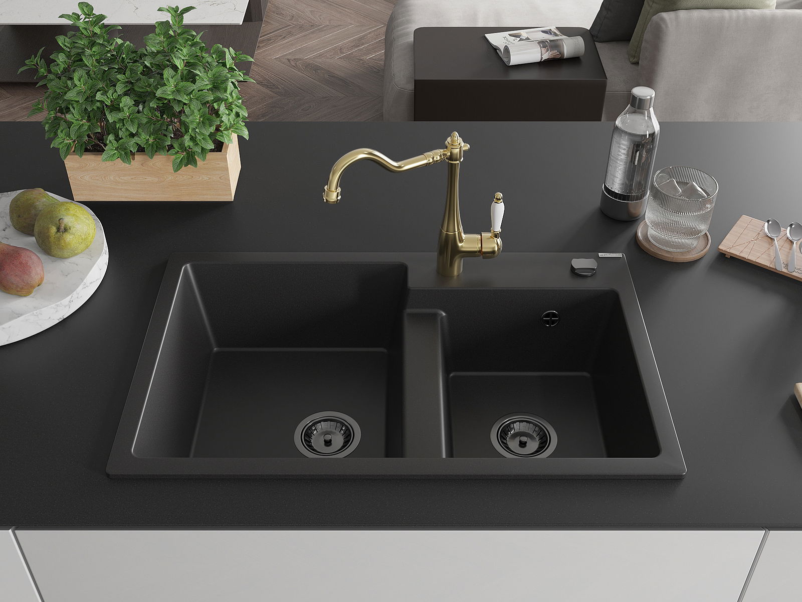Den Ëmwäschbecken ass aus héichwäertege Granit gemaach. Et stellt eng elegant awer virun allem praktesch Ergänzung fir all Kichen duer, onofhängeg vun hirem Stil. Déi héich Qualitéit an Haltbarkeet vum Granit suergen fir méi järelaang Benotzung.