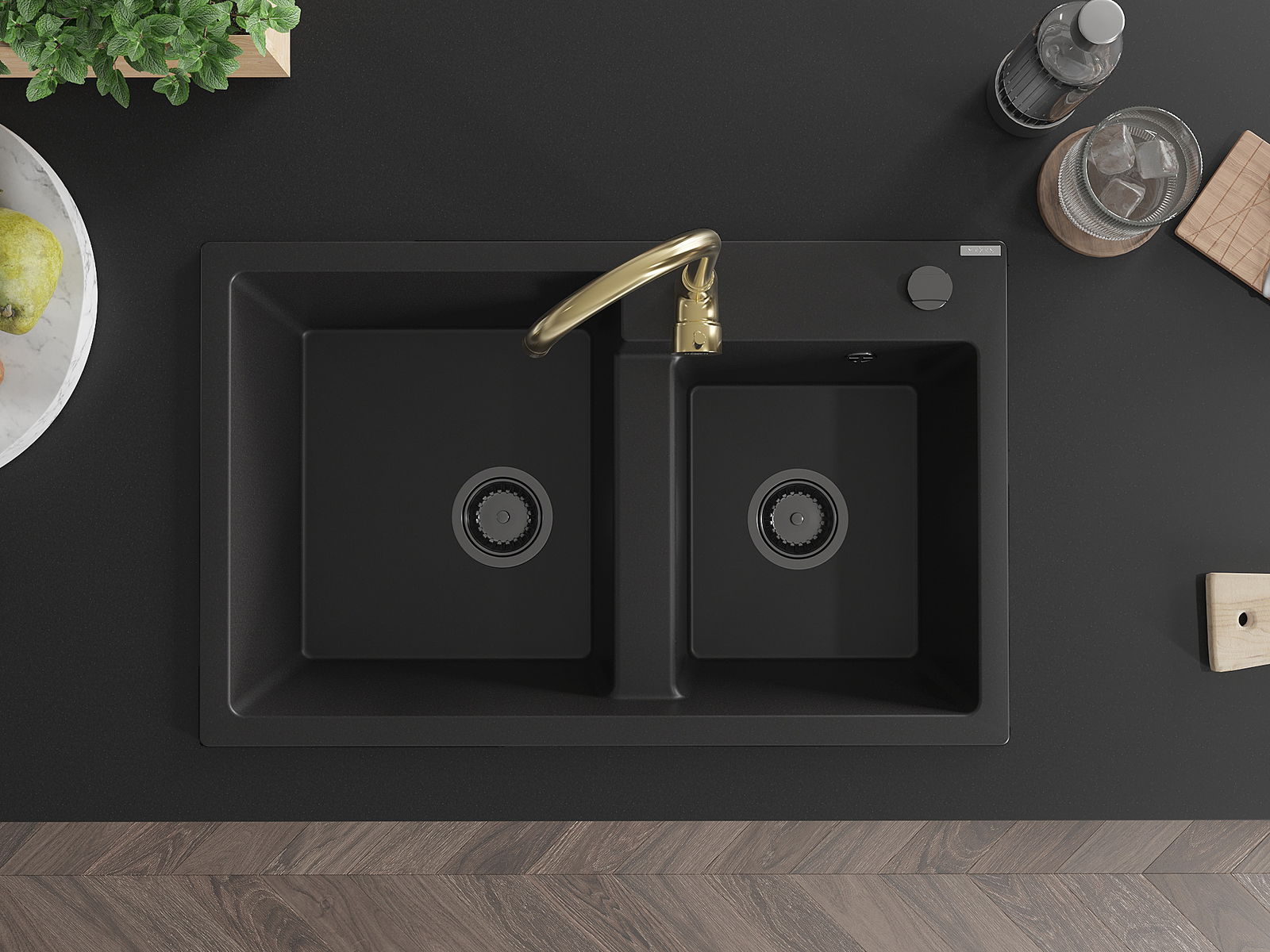 Mexen Tomas Granitspullt den zwee-Bolidden mat Kichenhéichkran Telma, schwaarz - 6516-77-670200-50-B