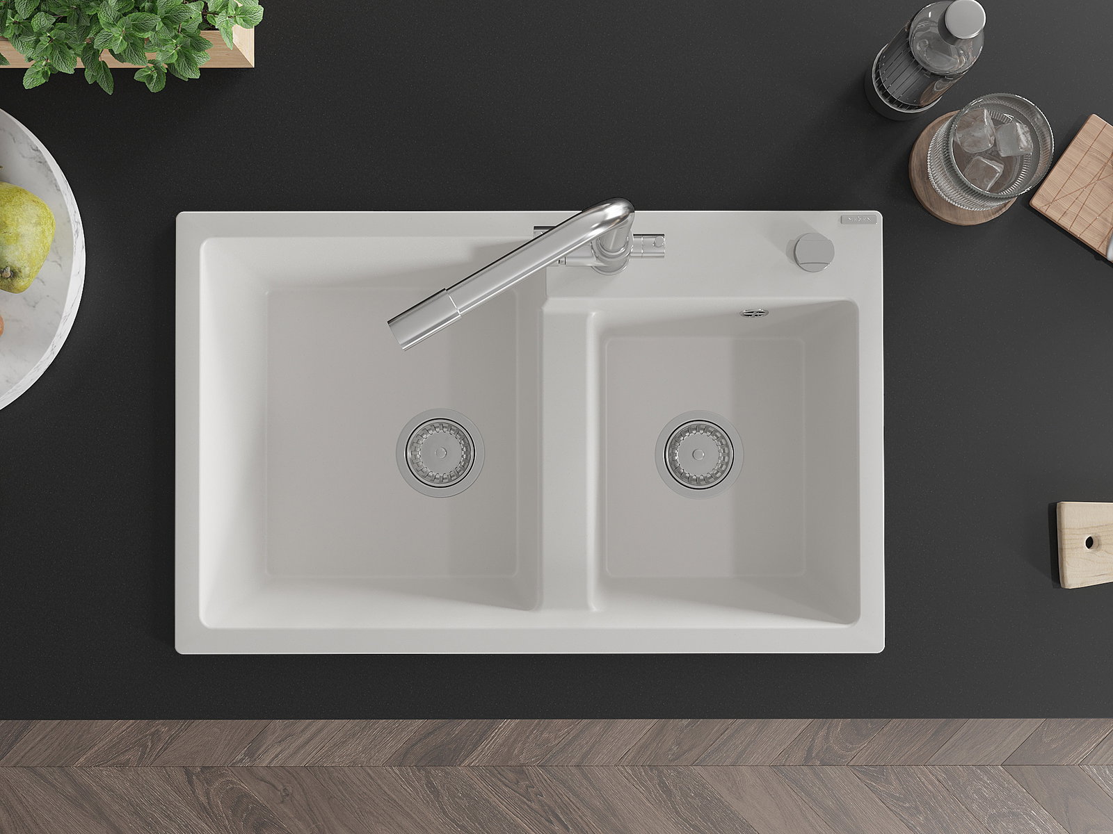 Mexen Tomas granit Spullsteen mat 2-Kummer mat Kichekran Duero, wäiss - 6516-20-671600-00
