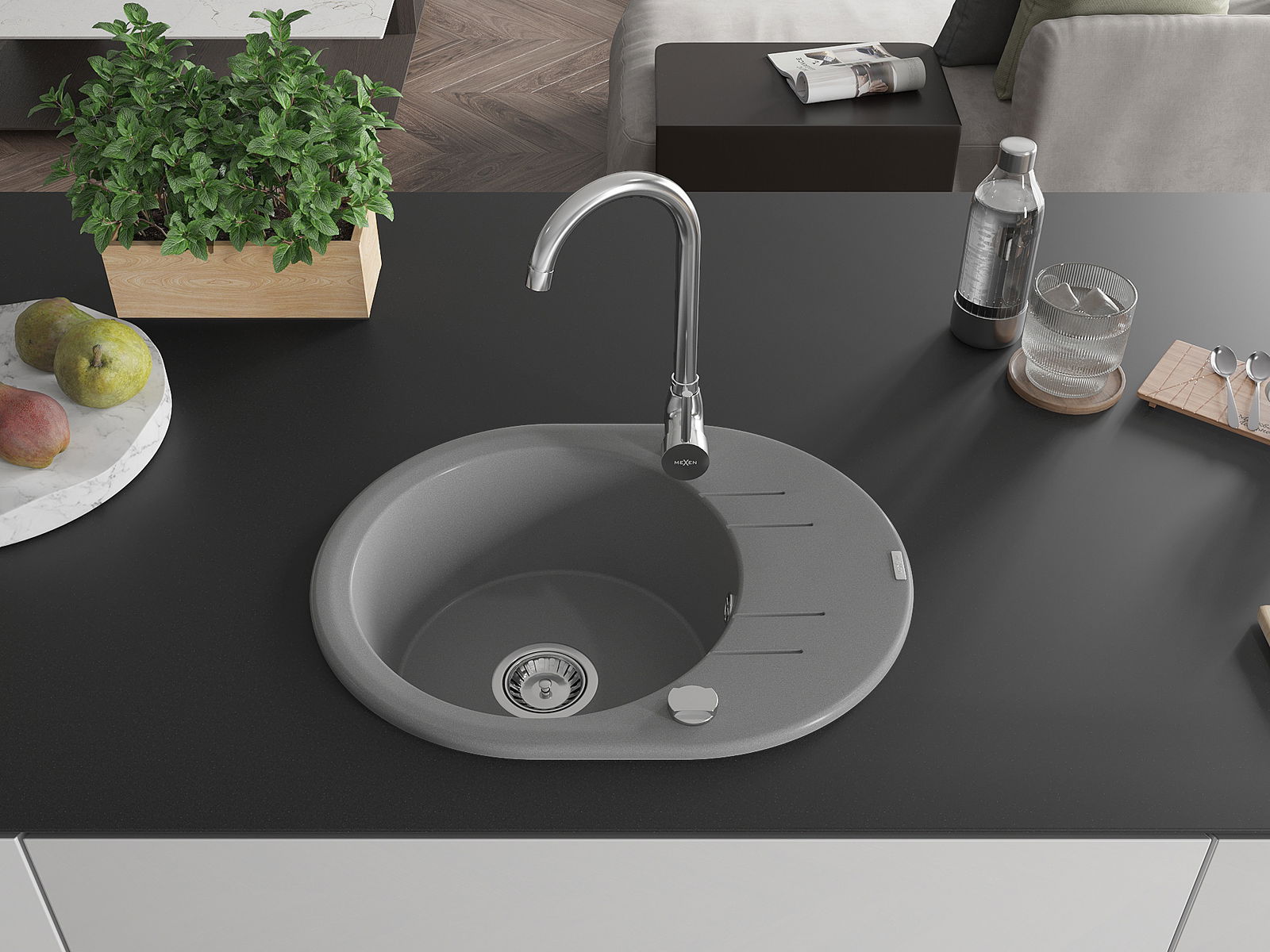 Mexen Kevin Granit-Ëvier 1-Kummer mat Oflaaf a Kichendäich Telma, gro - 6517-71-670200-00