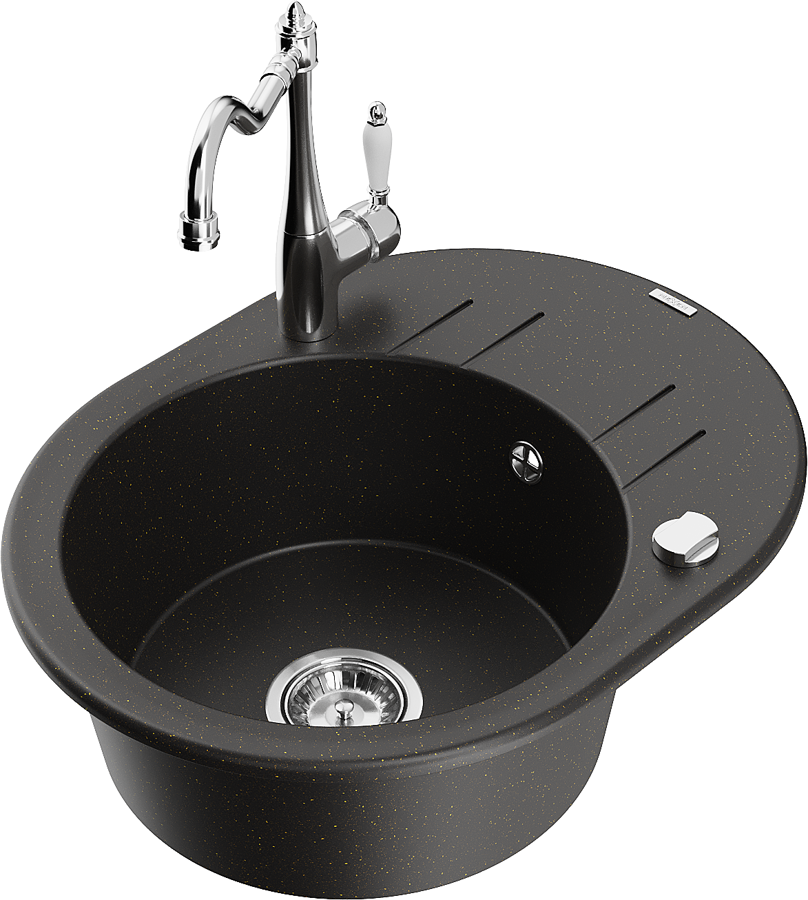 Den Spullsteen huet 2 virberäitet Lächer mat engem Duerchmiesser vun 35 mm, déi selbststänneg ausgeschloen kënne ginn. Se kënne fir d'Montage vun engem Flëssegkeetsspender benotzt ginn, deen d'Präsenz vu Plastikfläschen an der Kichen eliminéiert an hir en elegant Finish gëtt.