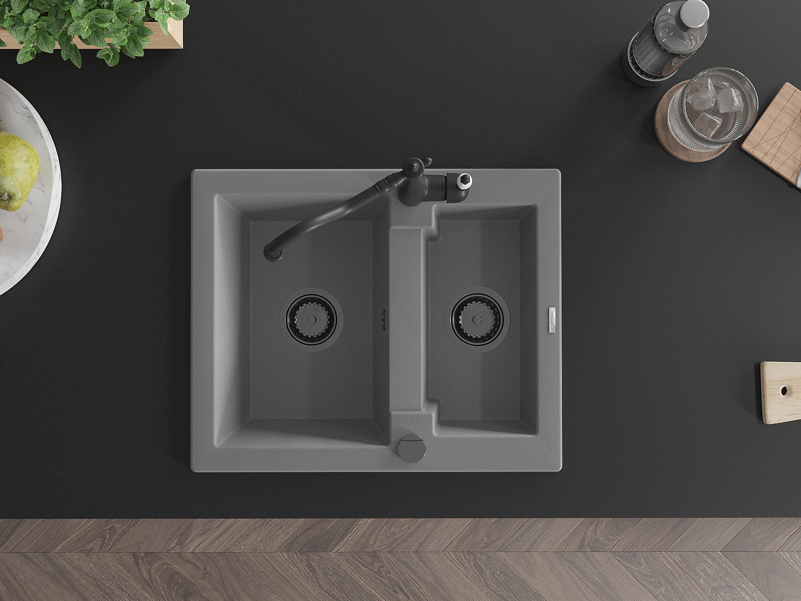Den Ëmwäschbecken ass aus héichwäertege Granit gemaach. Et stellt eng elegant awer virun allem praktesch Ergänzung fir all Kichen duer, onofhängeg vun hirem Stil. Déi héich Qualitéit an Haltbarkeet vum Granit suergen fir méi järelaang Benotzung.