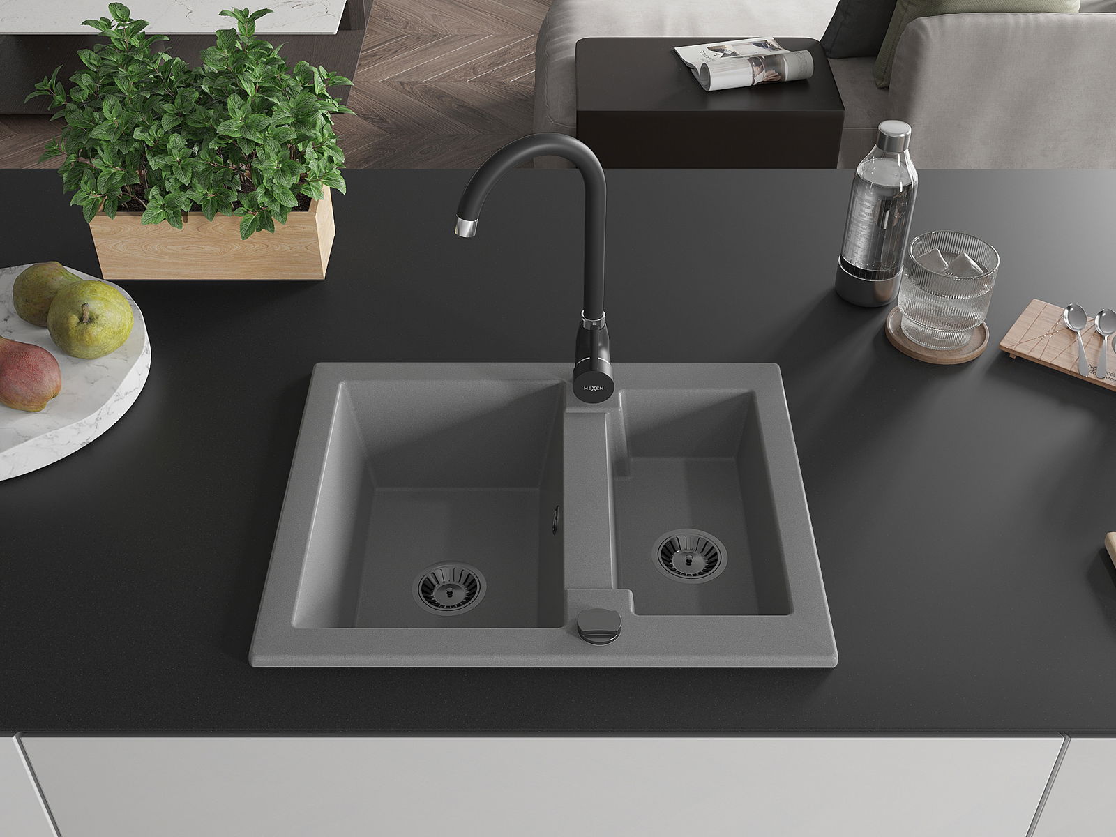 Den Ëmwäschbecken ass aus héichwäertege Granit gemaach. Et stellt eng elegant awer virun allem praktesch Ergänzung fir all Kichen duer, onofhängeg vun hirem Stil. Déi héich Qualitéit an Haltbarkeet vum Granit suergen fir méi järelaang Benotzung.
