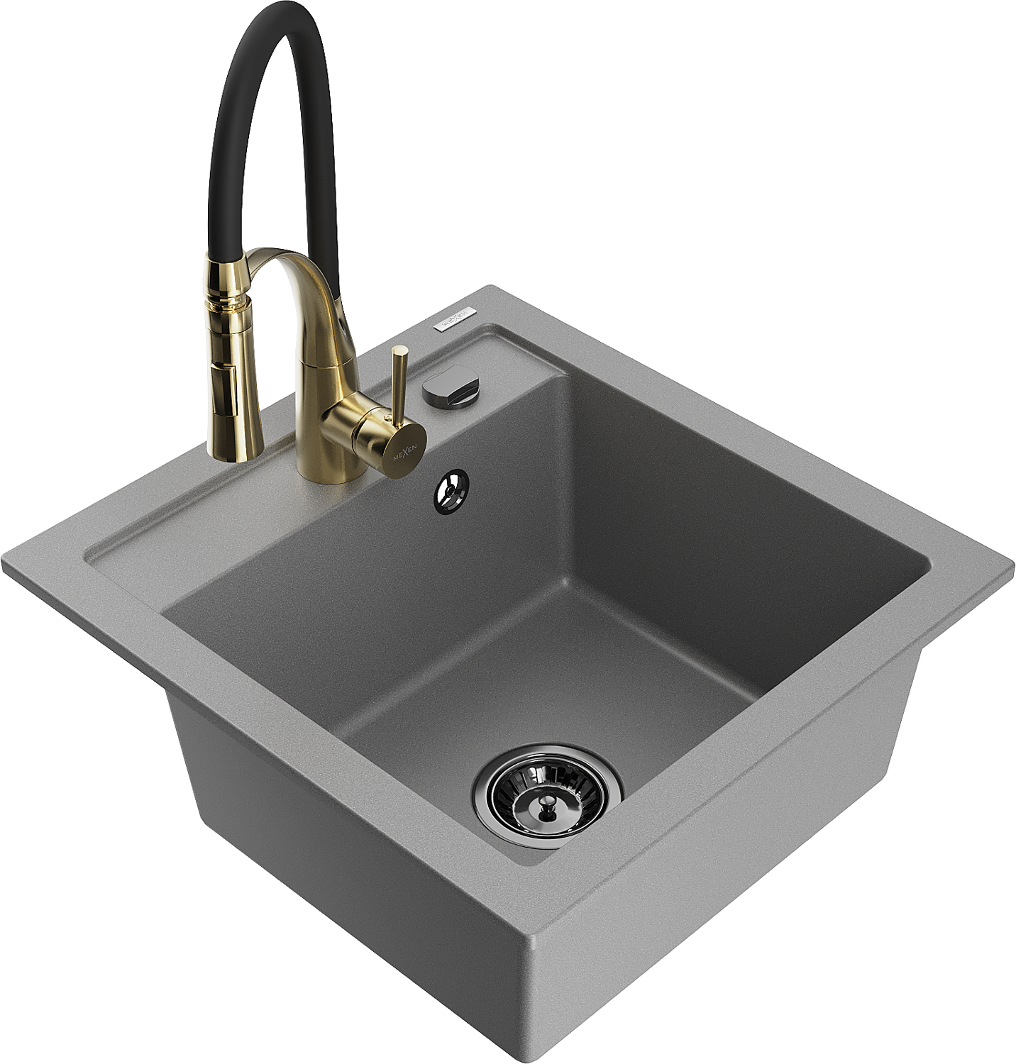 Mexen Vito granitëwtërmbecken 1-fach mat Kichenbatterie Aster, gro - 6503-71-73450-57-B