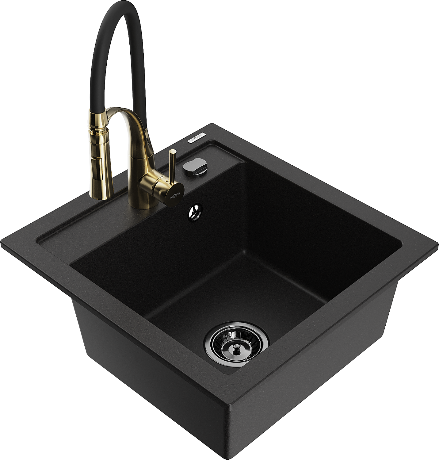 Mexen Vito Granitësche Spullsteen mat 1 Kammer a Kichendusch Aster, schwaarz - 6503-77-73450-57-B
