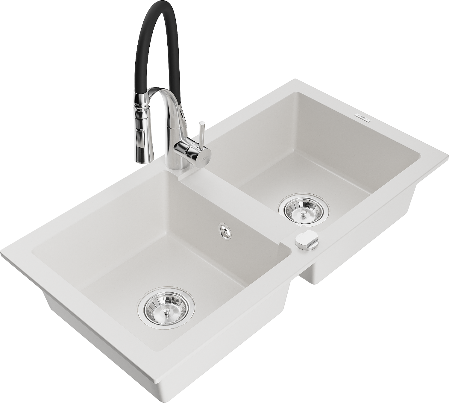 Mexen Mario Granit-Spullsteen mat 2 Schëffer mat Kichenbatterie Aster, wäiss - 6504-20-73450-07