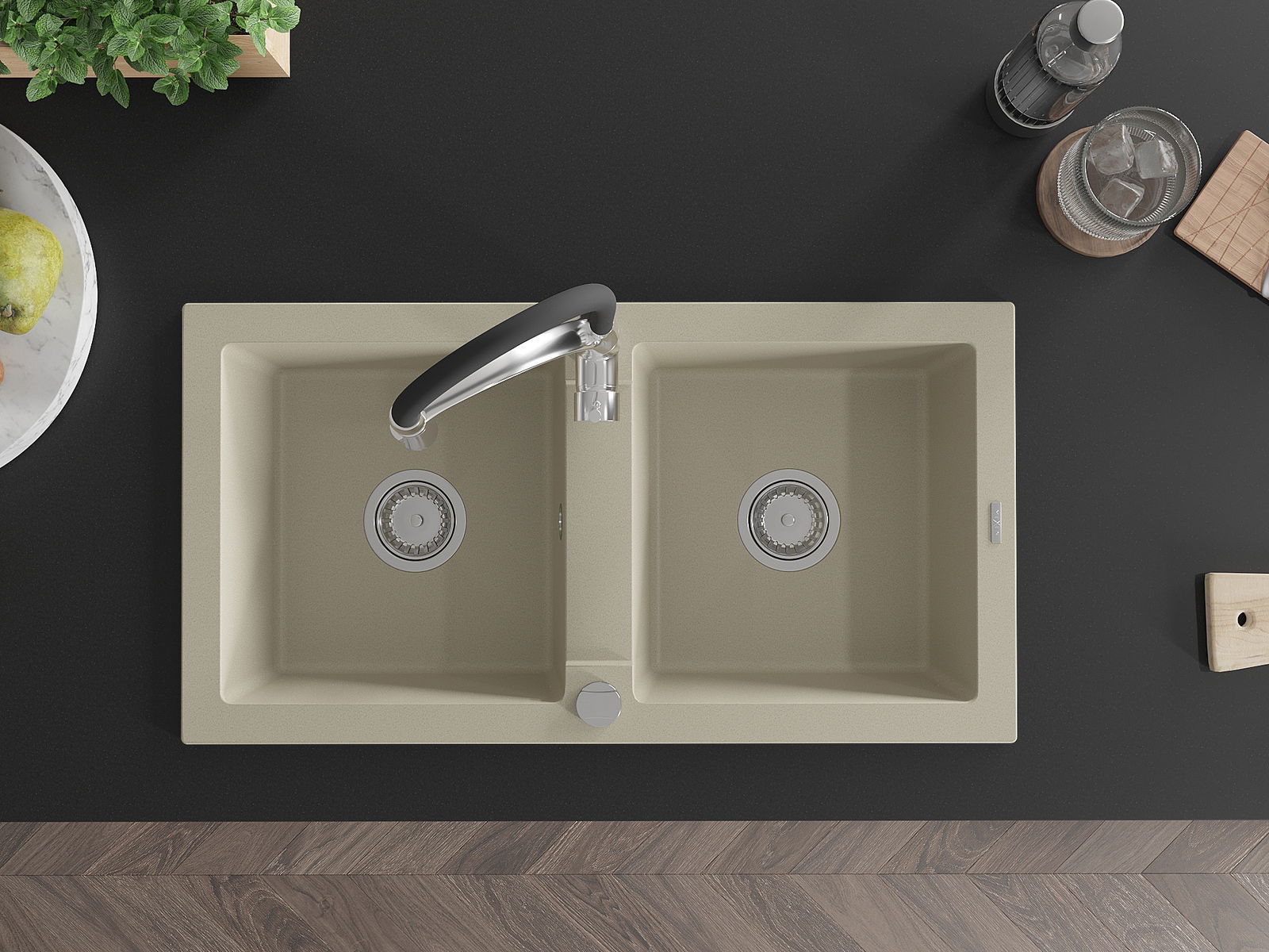 D'Uewerfläch vum Spullbecken ass ganz gutt gehärt, et ass aussergewéinlech resistent géint mechanesch Schied a Kratzer. De bestännege Materialausféierung erlaabt Iech d'gutt Ausgesinn vum Spullbecken fir vill Joeren ze genéissen.