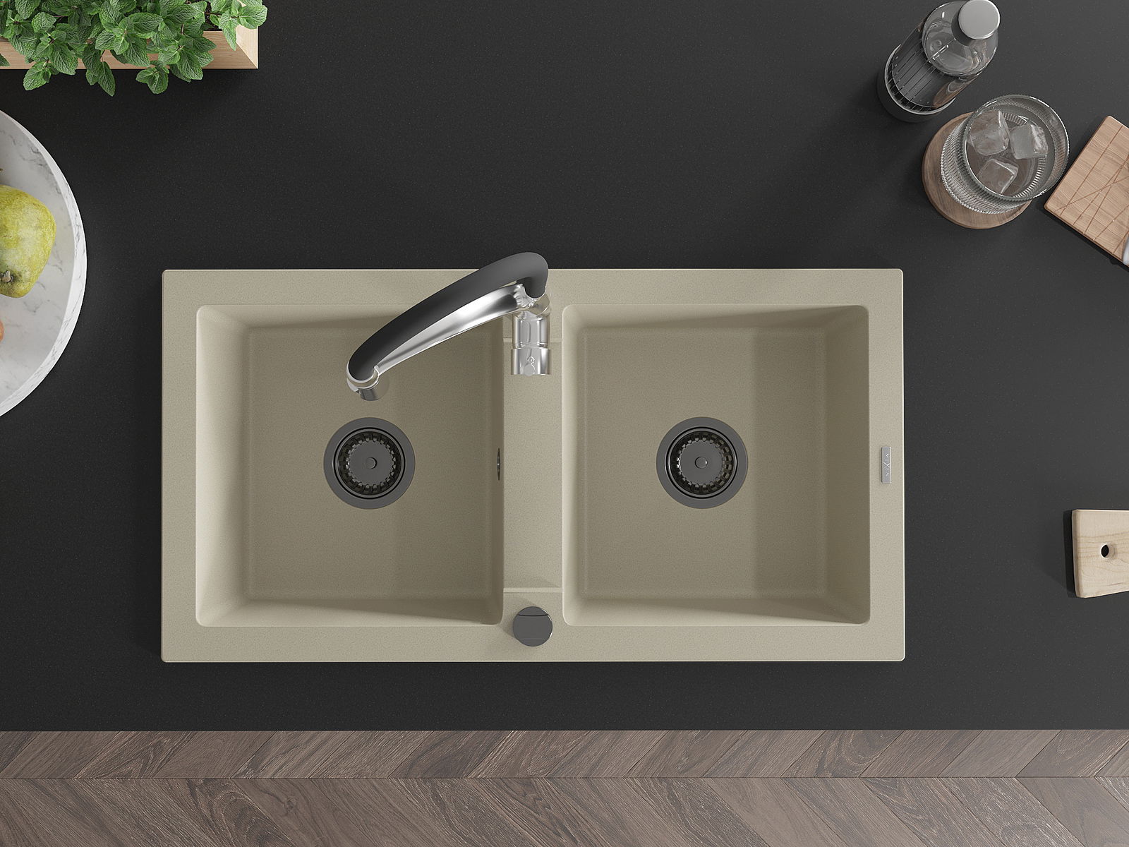 Den Ëmwäschbecken ass aus héichwäertege Granit gemaach. Et stellt eng elegant awer virun allem praktesch Ergänzung fir all Kichen duer, onofhängeg vun hirem Stil. Déi héich Qualitéit an Haltbarkeet vum Granit suergen fir méi järelaang Benotzung.