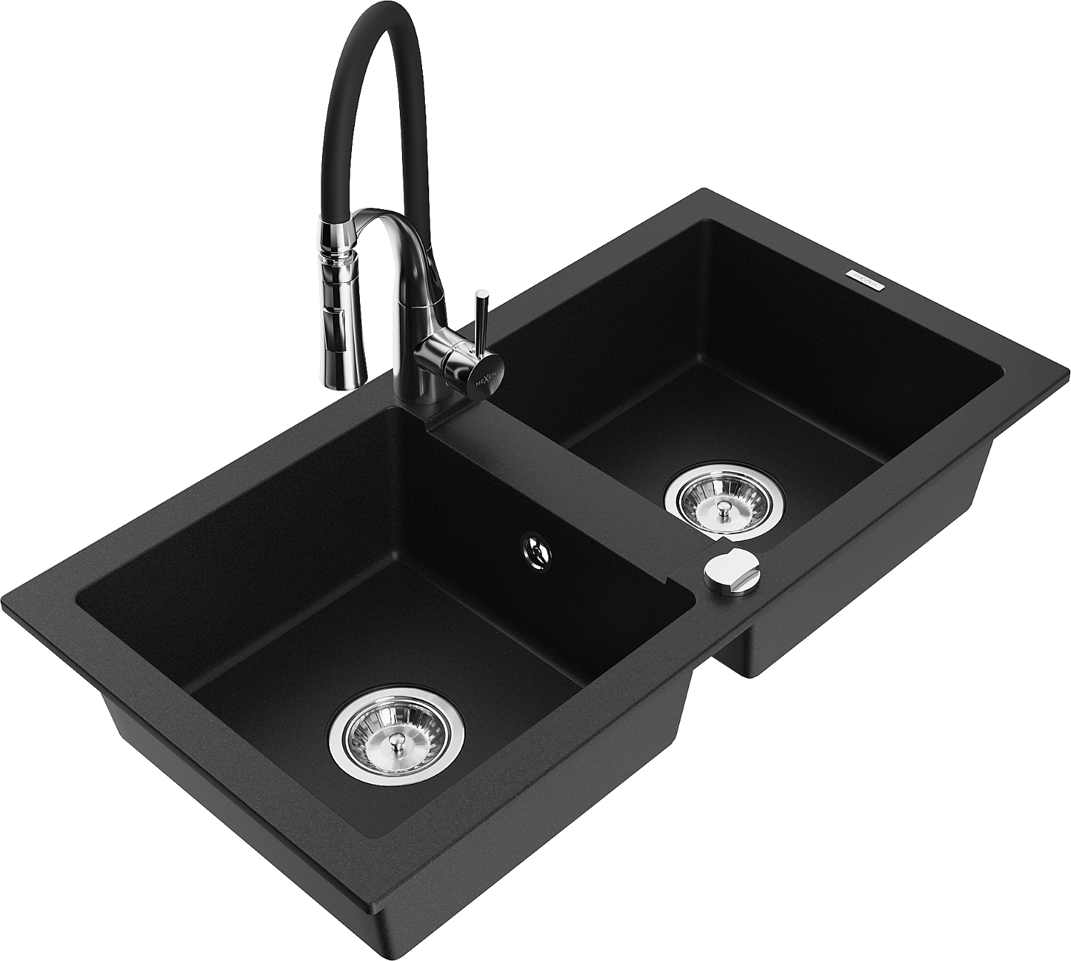 Mexen Mario Granit-Spullsteen 2-Chamberen mat Kichenkran Aster, schwaarz - 6504-77-73450-07