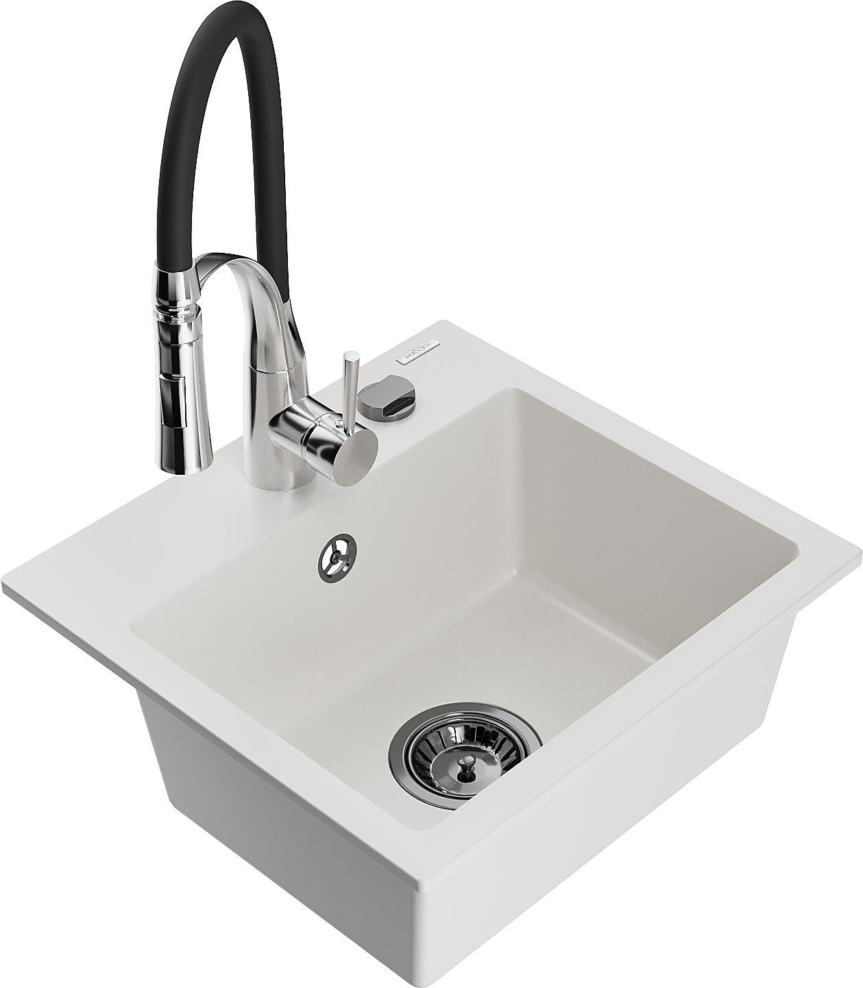 Mexen Milo Granit Spullsteen 1-Komoresch mat Kichekran Aster, wäiss - 6505-20-73450-07-B