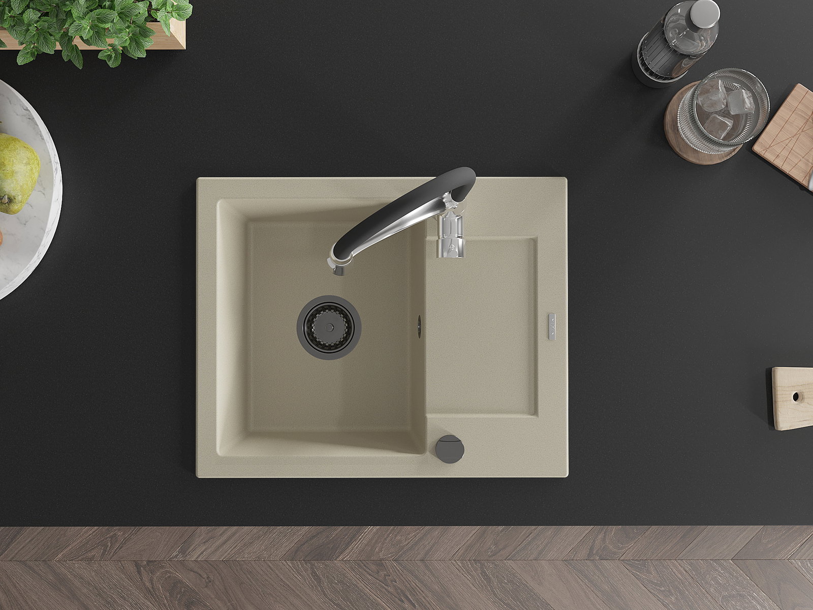 D'Uewerfläch vum Spullstee ass fleck- a verfärbungsresistent, wat se einfach ze botzen mécht an hir Faarf iwwer eng laang Zäit vum Gebrauch behalen léisst. Esthetesch an praktesch Ergänzung fir all Kichen.