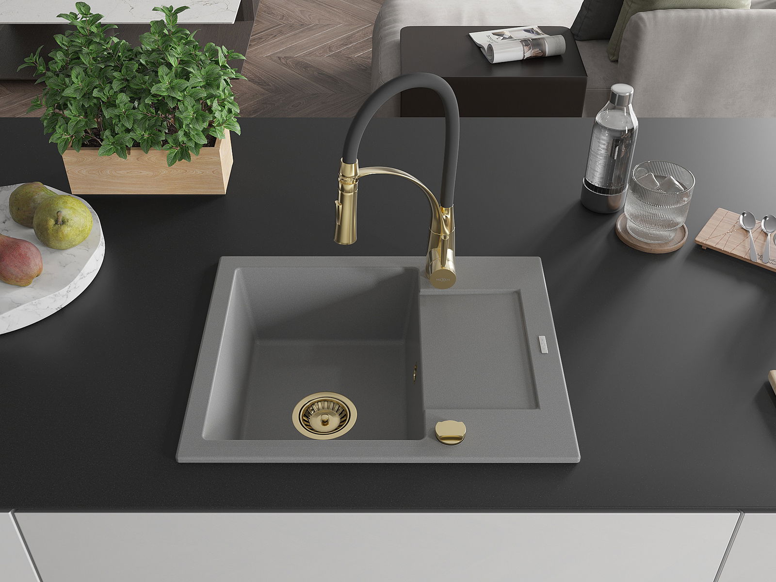 Den Ëmwäschbecken ass aus héichwäertege Granit gemaach. Et stellt eng elegant awer virun allem praktesch Ergänzung fir all Kichen duer, onofhängeg vun hirem Stil. Déi héich Qualitéit an Haltbarkeet vum Granit suergen fir méi järelaang Benotzung.