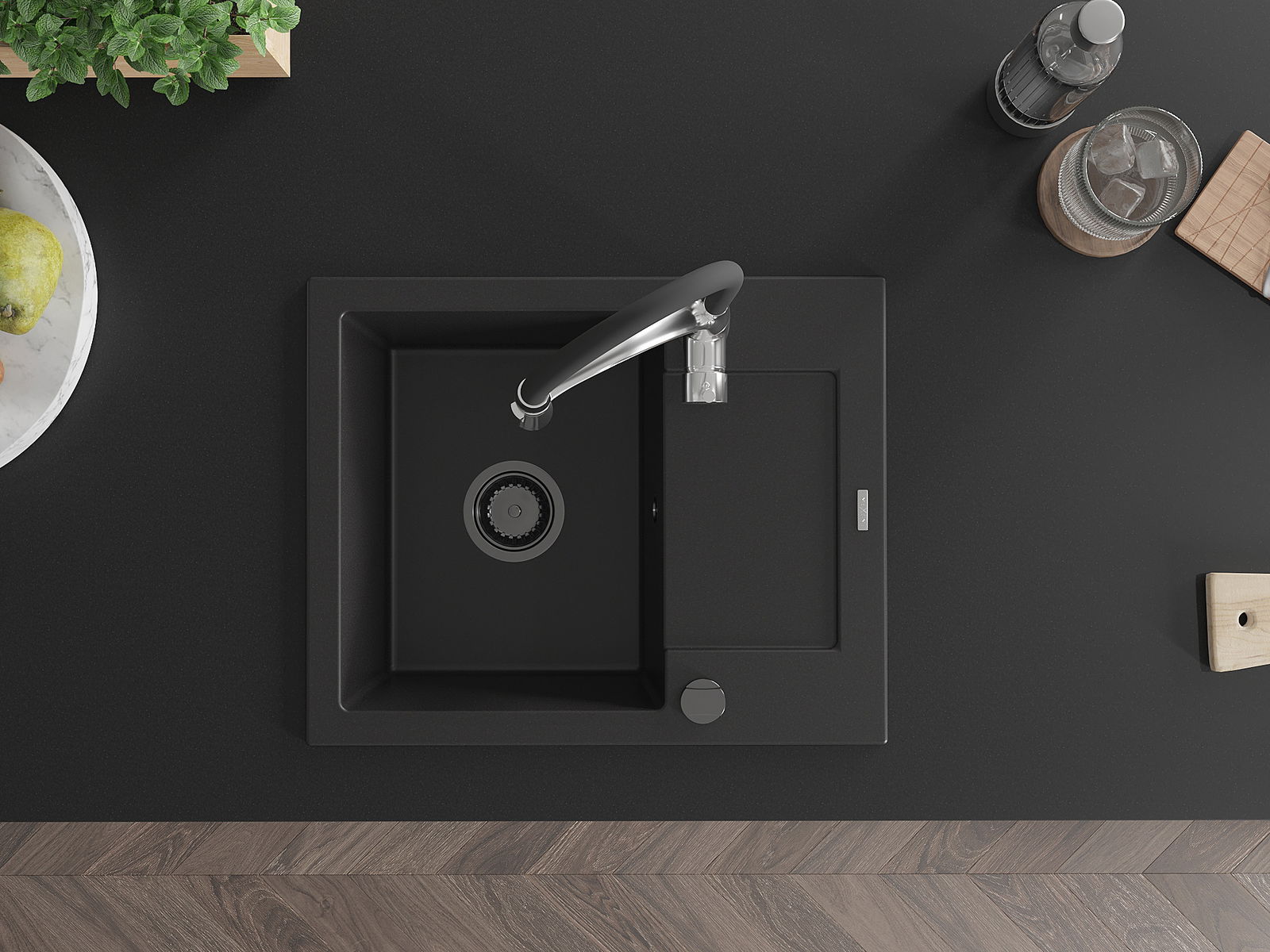 Mexen Enzo Granit-Spullsteen mat enger Schoss an Kichendusch Aster, schwaarz - 6506-77-73450-07-B