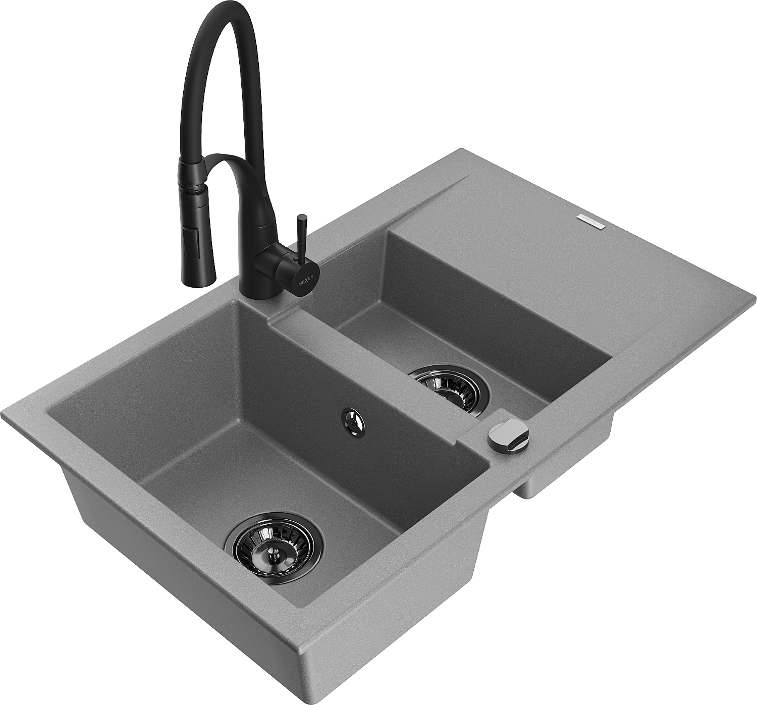 Mexen Gaspar Granit-Ëvier 1,5-Kummer mat Oflëss an Kichenkraan Aster, gro - 6507-71-73450-70-B