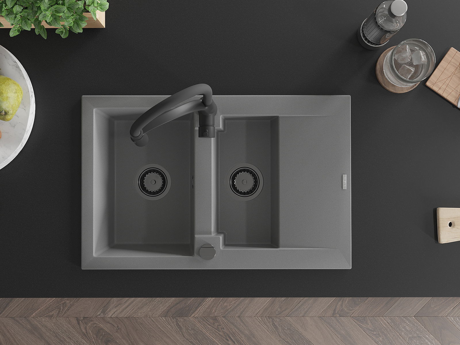 Den Ëmwäschbecken ass aus héichwäertege Granit gemaach. Et stellt eng elegant awer virun allem praktesch Ergänzung fir all Kichen duer, onofhängeg vun hirem Stil. Déi héich Qualitéit an Haltbarkeet vum Granit suergen fir méi järelaang Benotzung.