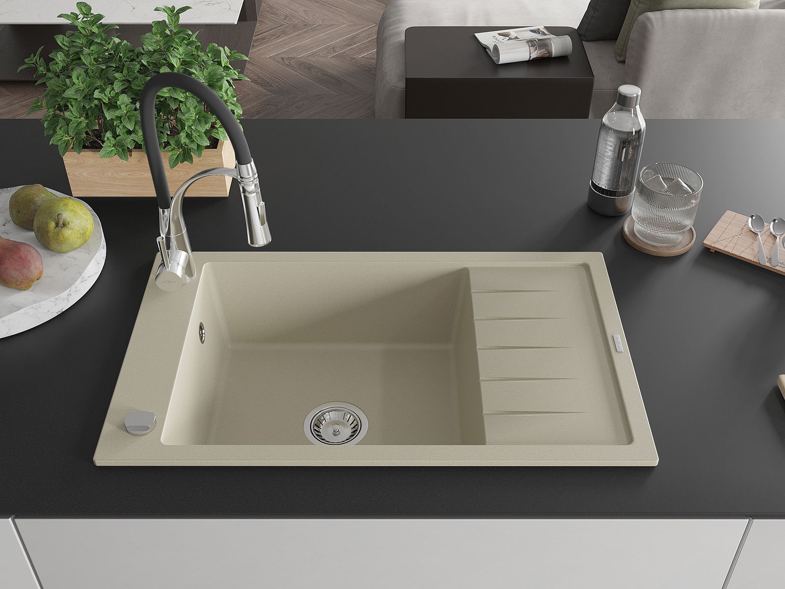 Mexen Elias Granit Spullsteen mat eng Huel mat Oflaafberäich an Kichendëpp Aster, beige - 6511-69-73450-07
