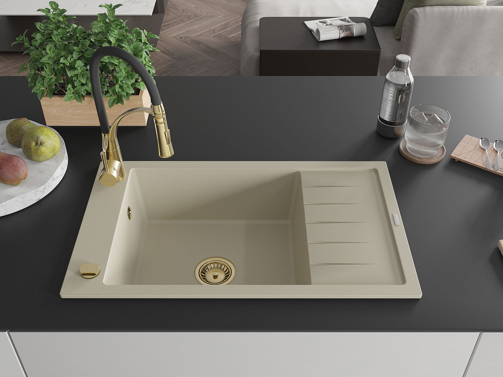 D'Uewerfläch vum Spullstee ass fleck- a verfärbungsresistent, wat se einfach ze botzen mécht an hir Faarf iwwer eng laang Zäit vum Gebrauch behalen léisst. Esthetesch an praktesch Ergänzung fir all Kichen.