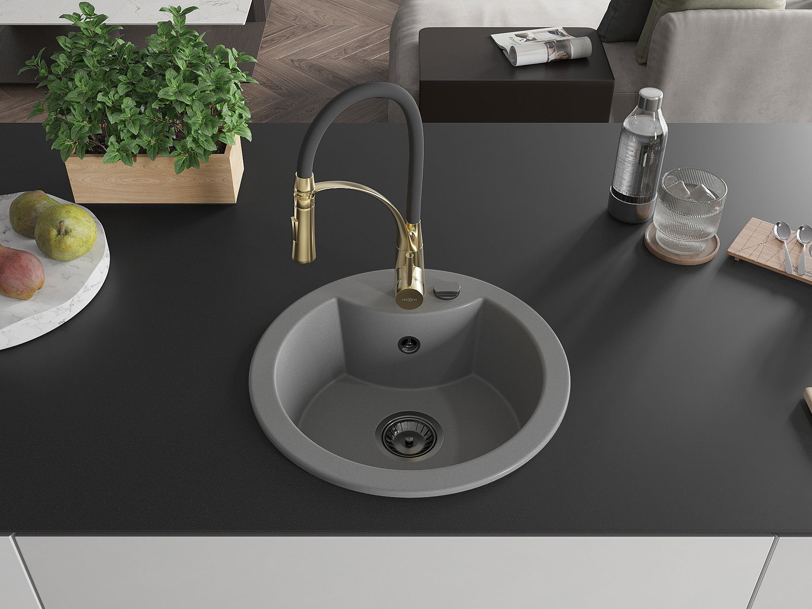 Mexen Diego Granit-Spullsteen 1-Komor mat Kichenkran Aster, gro - 6512-71-73450-57-B
