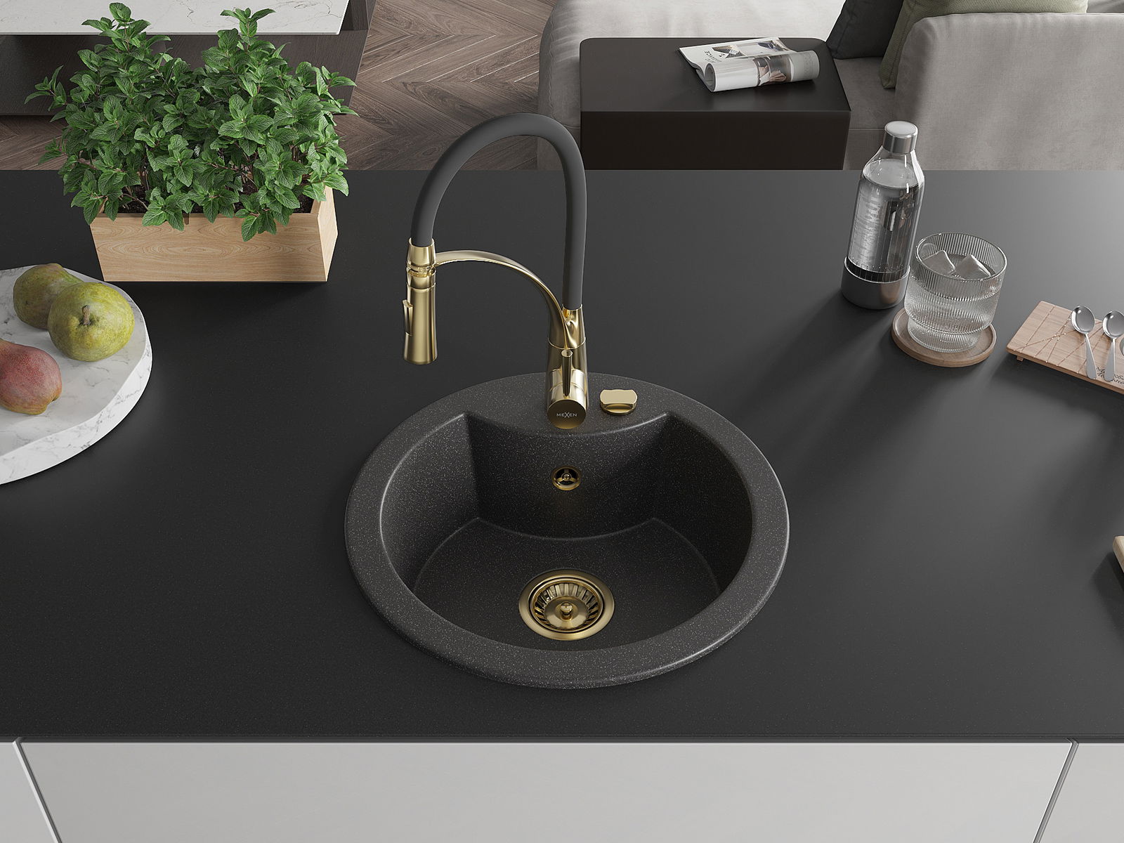 Mexen Diego Granitspullzewe 1-Komplex mat Kichenkraan Aster, schwaarz gesprenkelt - 6512-76-73450-57-G