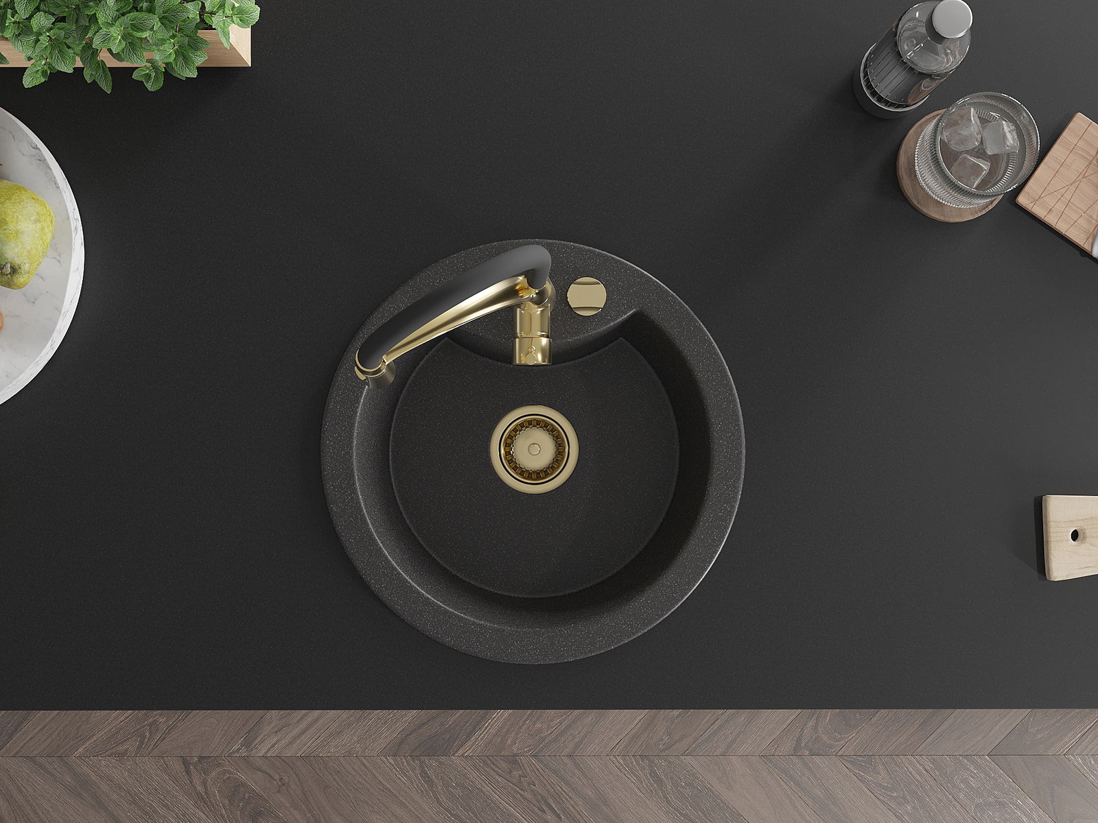 Den Ëmwäschbecken ass aus héichwäertege Granit gemaach. Et stellt eng elegant awer virun allem praktesch Ergänzung fir all Kichen duer, onofhängeg vun hirem Stil. Déi héich Qualitéit an Haltbarkeet vum Granit suergen fir méi järelaang Benotzung.