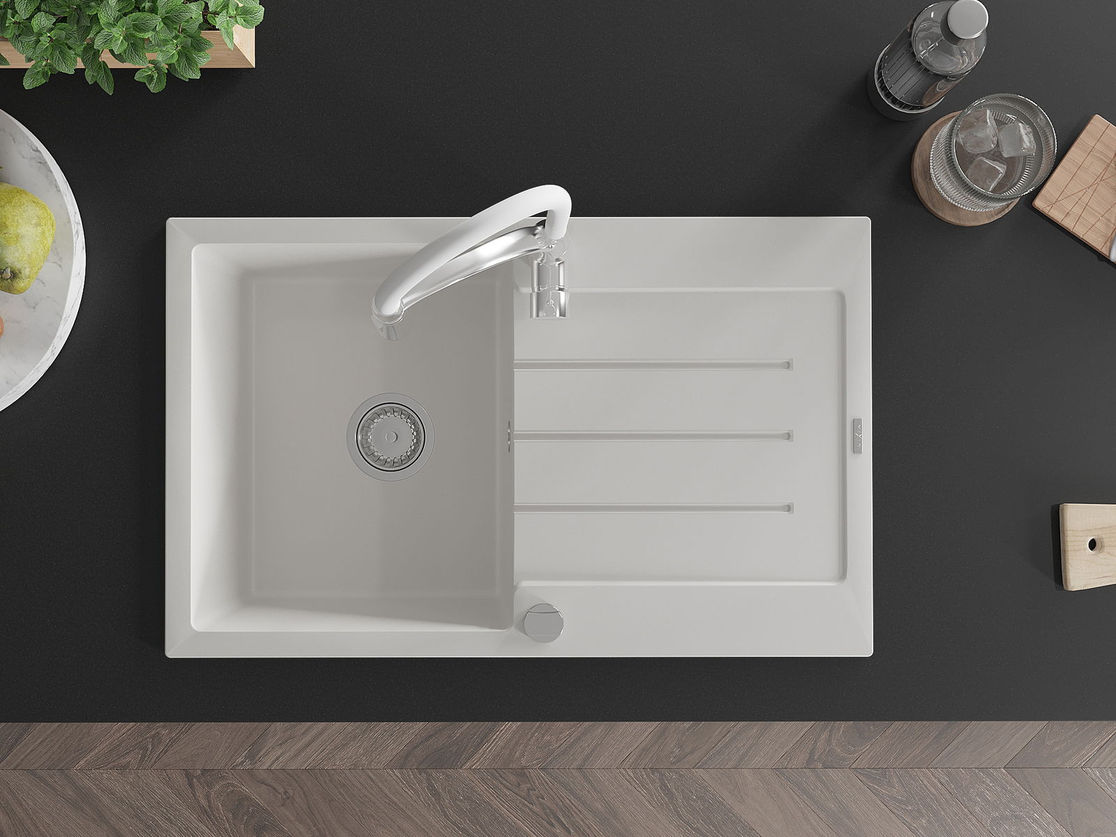 D'Uewerfläch vum Spullstee ass fleck- a verfärbungsresistent, wat se einfach ze botzen mécht an hir Faarf iwwer eng laang Zäit vum Gebrauch behalen léisst. Esthetesch an praktesch Ergänzung fir all Kichen.