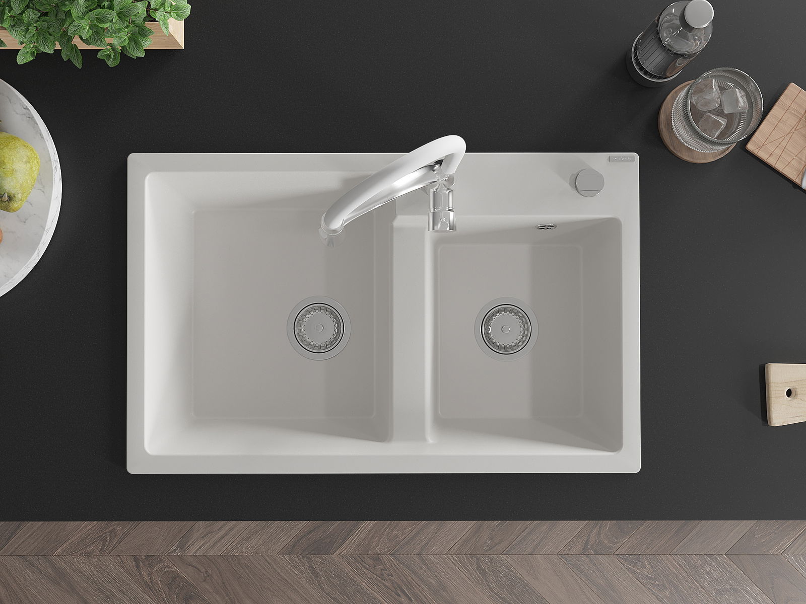 D'Uewerfläch vum Spullstee ass fleck- a verfärbungsresistent, wat se einfach ze botzen mécht an hir Faarf iwwer eng laang Zäit vum Gebrauch behalen léisst. Esthetesch an praktesch Ergänzung fir all Kichen.
