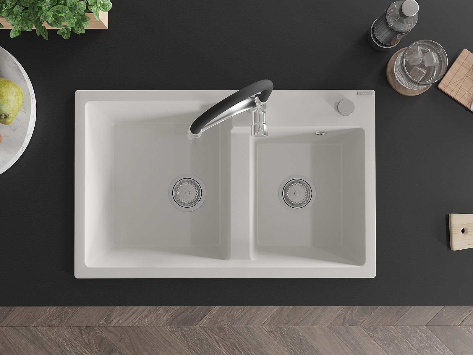 D'Uewerfläch vum Spullbecken ass ganz gutt gehärt, et ass aussergewéinlech resistent géint mechanesch Schied a Kratzer. De bestännege Materialausféierung erlaabt Iech d'gutt Ausgesinn vum Spullbecken fir vill Joeren ze genéissen.