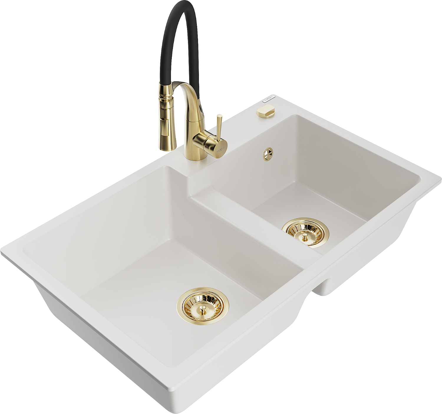 Mexen Tomas Granit-Spullstee 2-Kammeren mat Kichekran Aster, wäiss - 6516-20-73450-57-G
