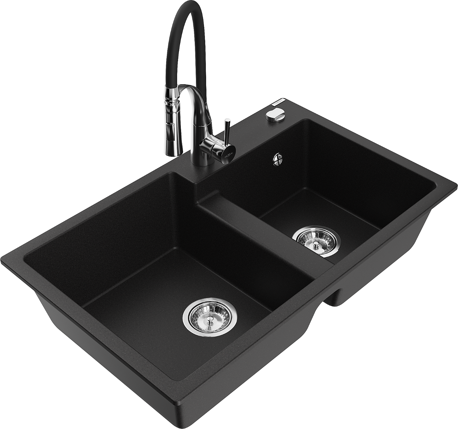 Mexen Tomas Granit Kicheldëpp mat 2 Schiefen a Kichenkraan Aster, schwaarz - 6516-77-73450-07