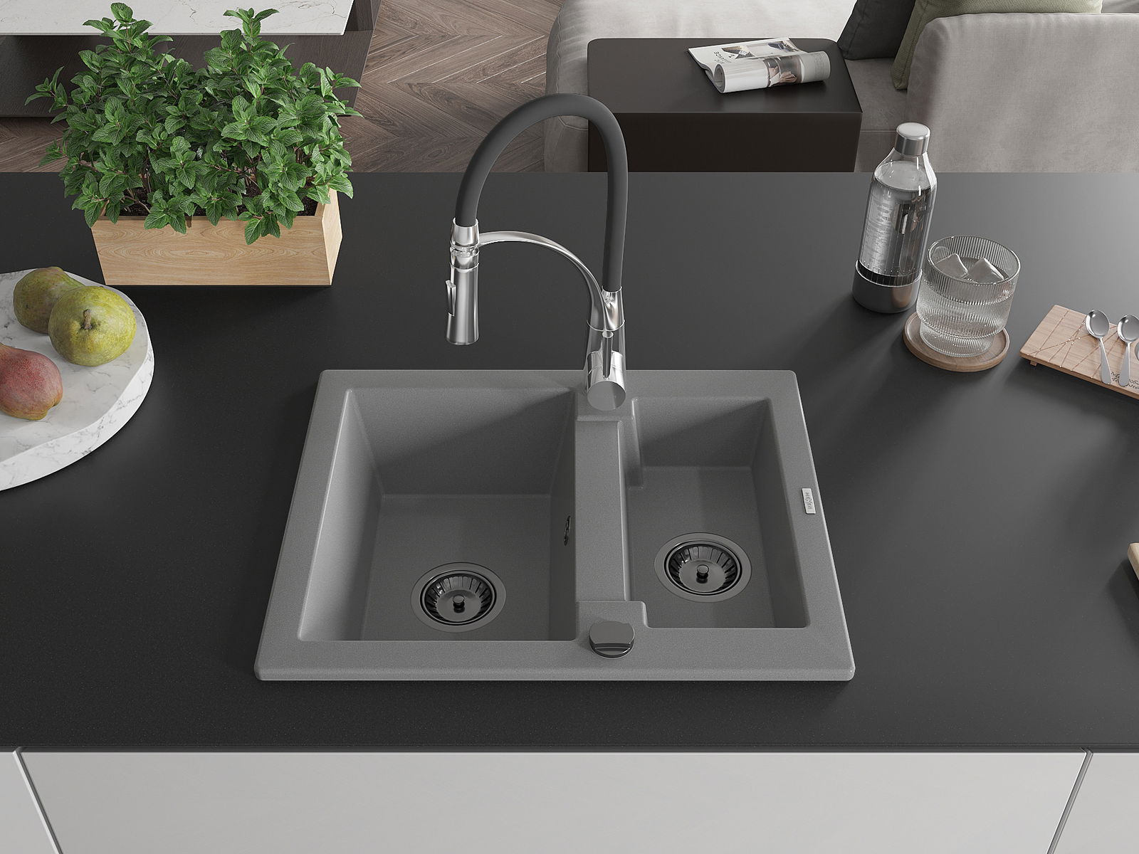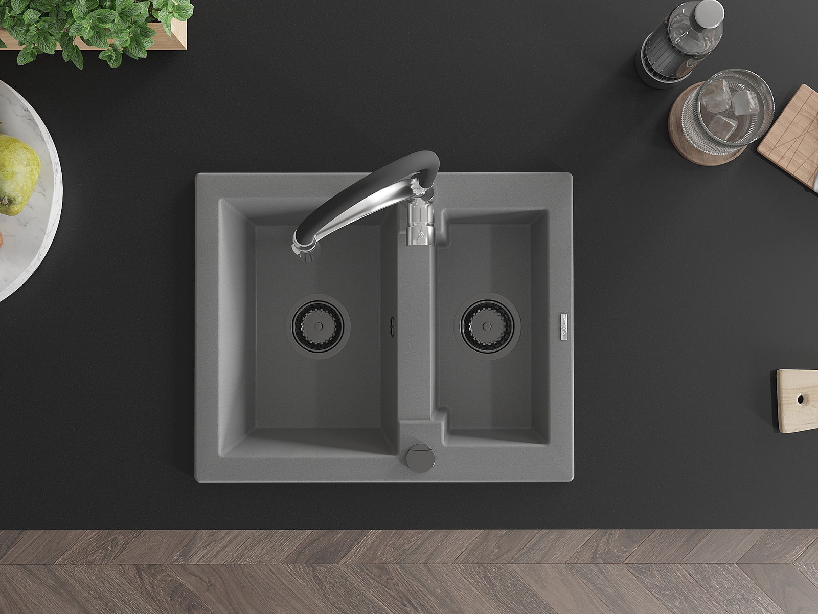 Den Ëmwäschbecken ass aus héichwäertege Granit gemaach. Et stellt eng elegant awer virun allem praktesch Ergänzung fir all Kichen duer, onofhängeg vun hirem Stil. Déi héich Qualitéit an Haltbarkeet vum Granit suergen fir méi järelaang Benotzung.