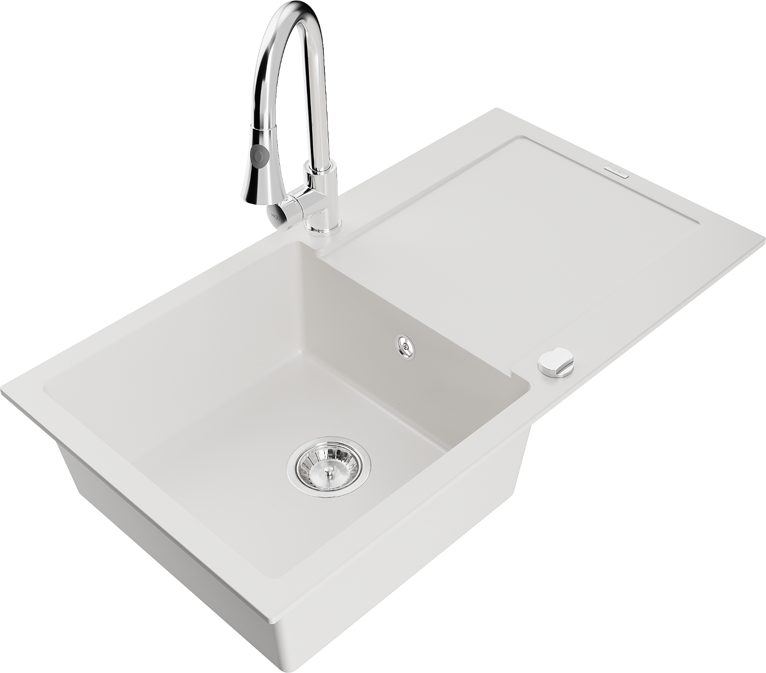 Mexen Leo Granitspulln, 1-Kammer mat Oflaacher an Kichekran Elia, wäiss - 6501-20-670101-00
