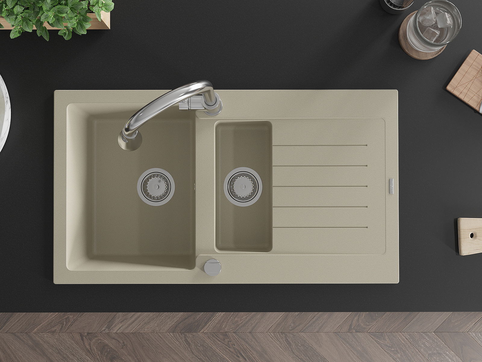 D'Uewerfläch vum Spullstee ass fleck- a verfärbungsresistent, wat se einfach ze botzen mécht an hir Faarf iwwer eng laang Zäit vum Gebrauch behalen léisst. Esthetesch an praktesch Ergänzung fir all Kichen.