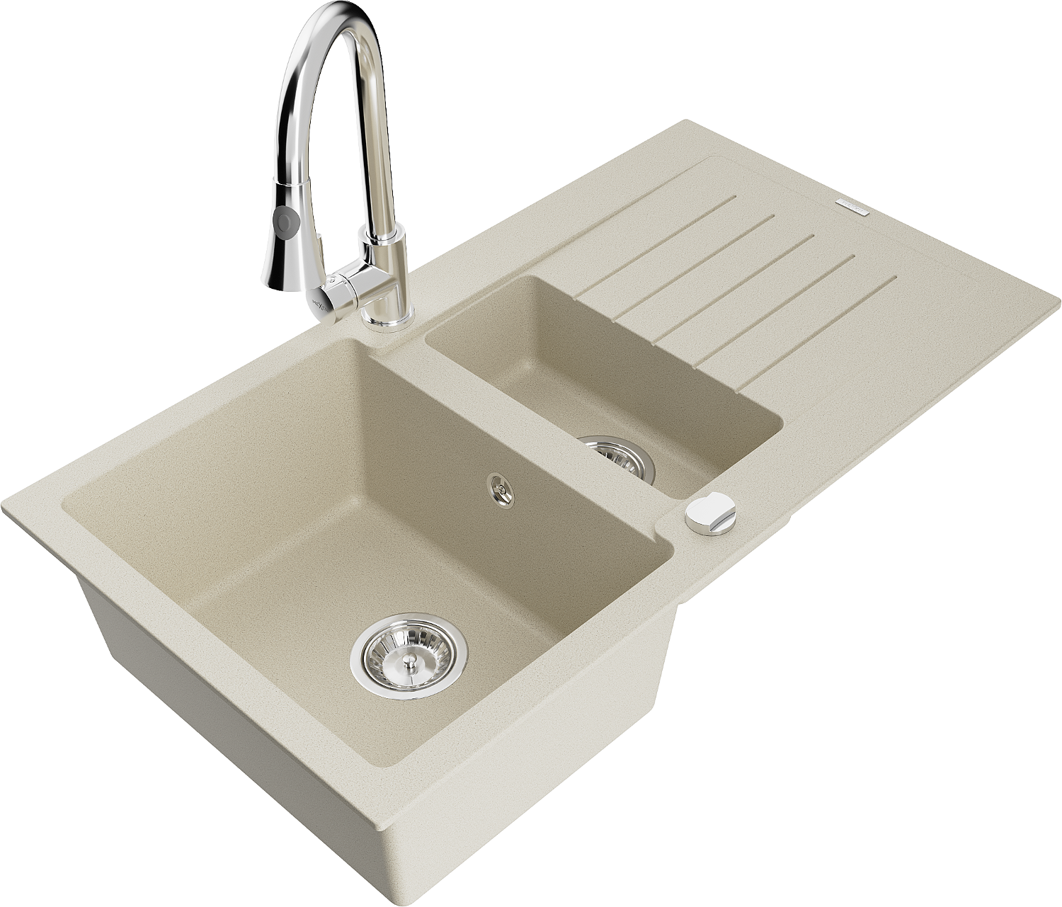 Mexen Matias Granit-Dëppchen 1,5-Sektion mat Drëpsfläch a Kichenkran Elia, wäiss - 6502-69-670101-00