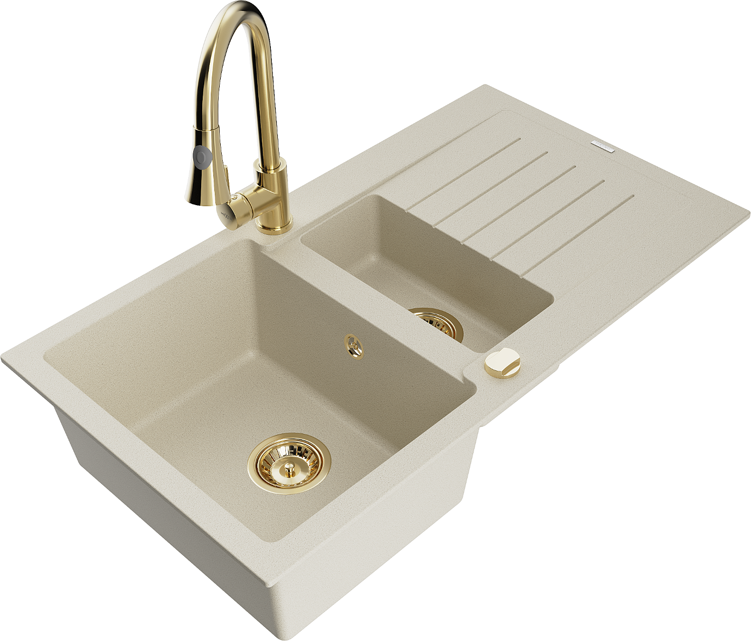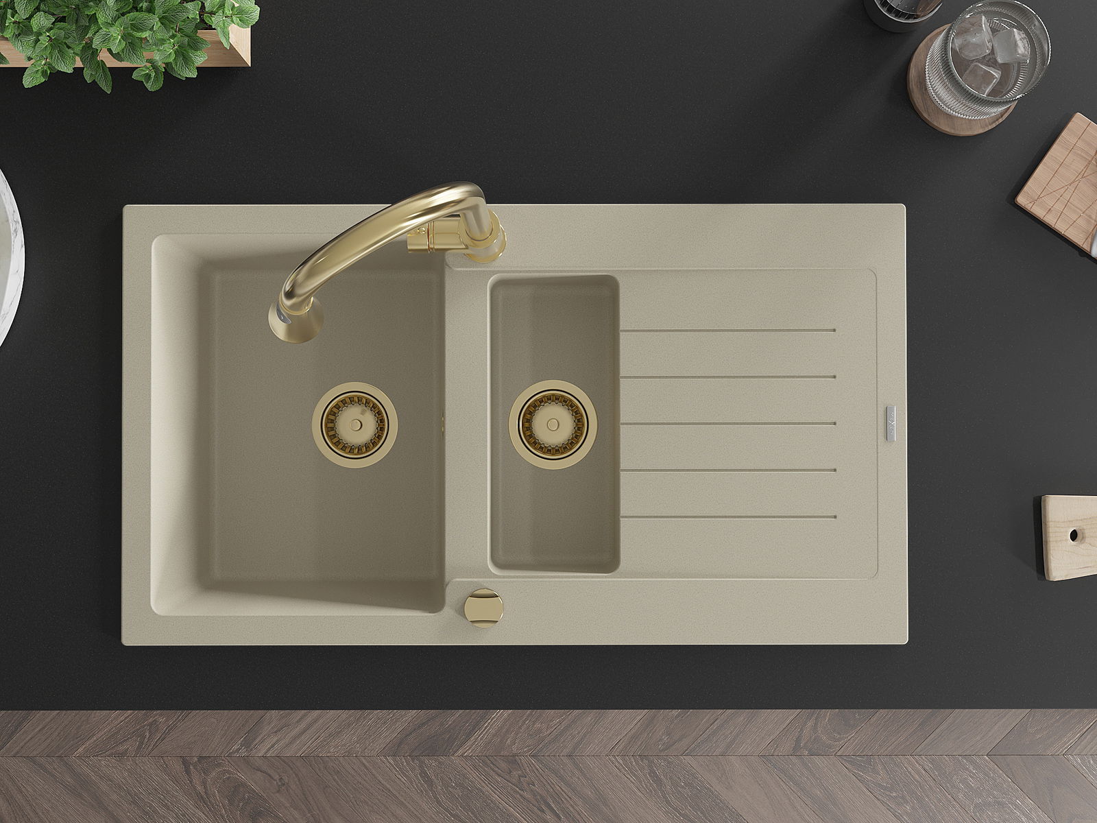 Mexen Matias Granit-Ëvier 1,5-Schoss mat Ofdrëpsfläch an Kichenkran Elia, beige - 6502-69-670101-50