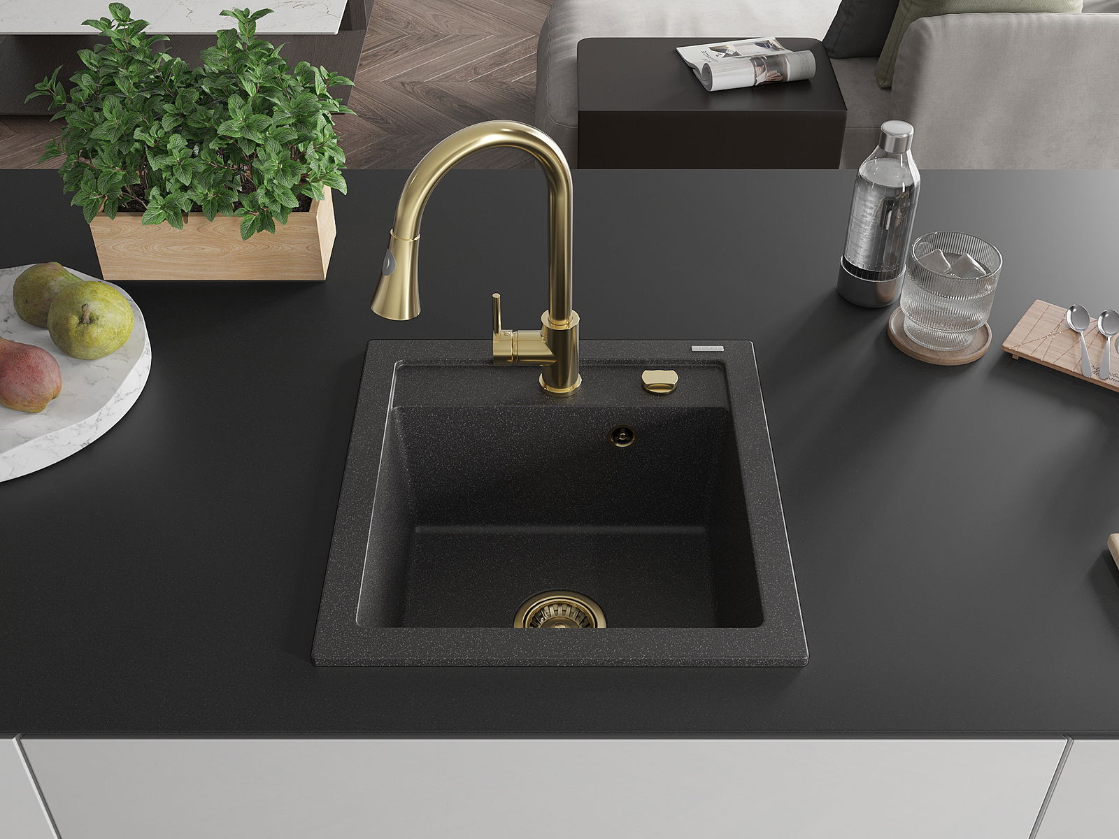 Mexen Vito Granit-Encastrées 1-Cuvetten mat Kichenkran Elia, schwaarz gesprenkelt - 6503-76-670101-50