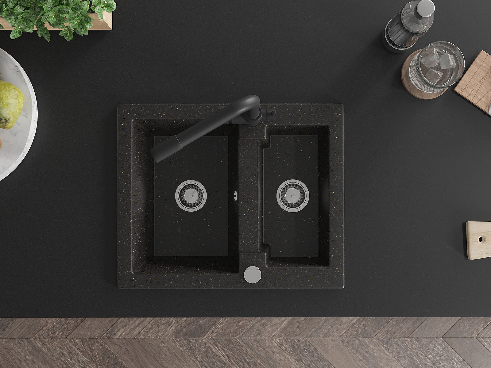 Den Ëmwäschbecken ass aus héichwäertege Granit gemaach. Et stellt eng elegant awer virun allem praktesch Ergänzung fir all Kichen duer, onofhängeg vun hirem Stil. Déi héich Qualitéit an Haltbarkeet vum Granit suergen fir méi järelaang Benotzung.