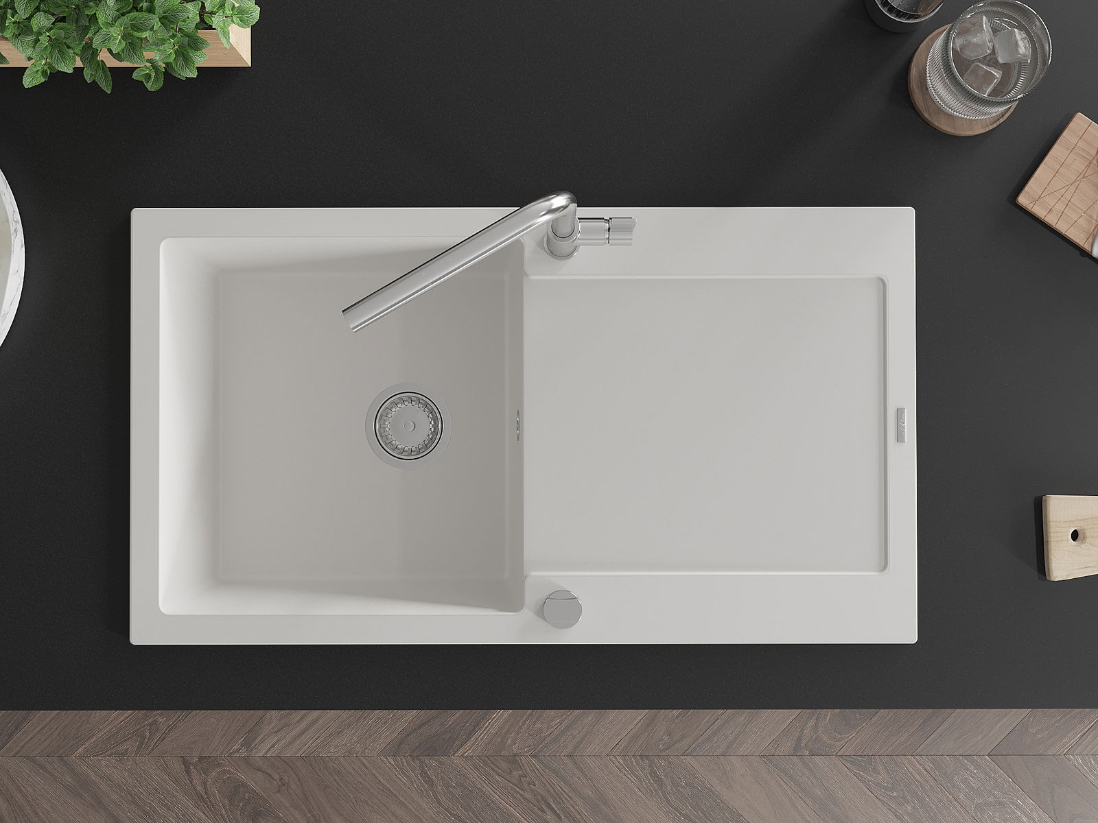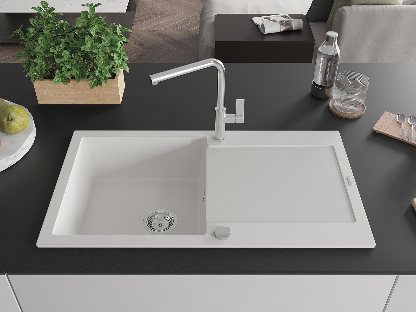 D'Uewerfläch vum Spullstee ass fleck- a verfärbungsresistent, wat se einfach ze botzen mécht an hir Faarf iwwer eng laang Zäit vum Gebrauch behalen léisst. Esthetesch an praktesch Ergänzung fir all Kichen.