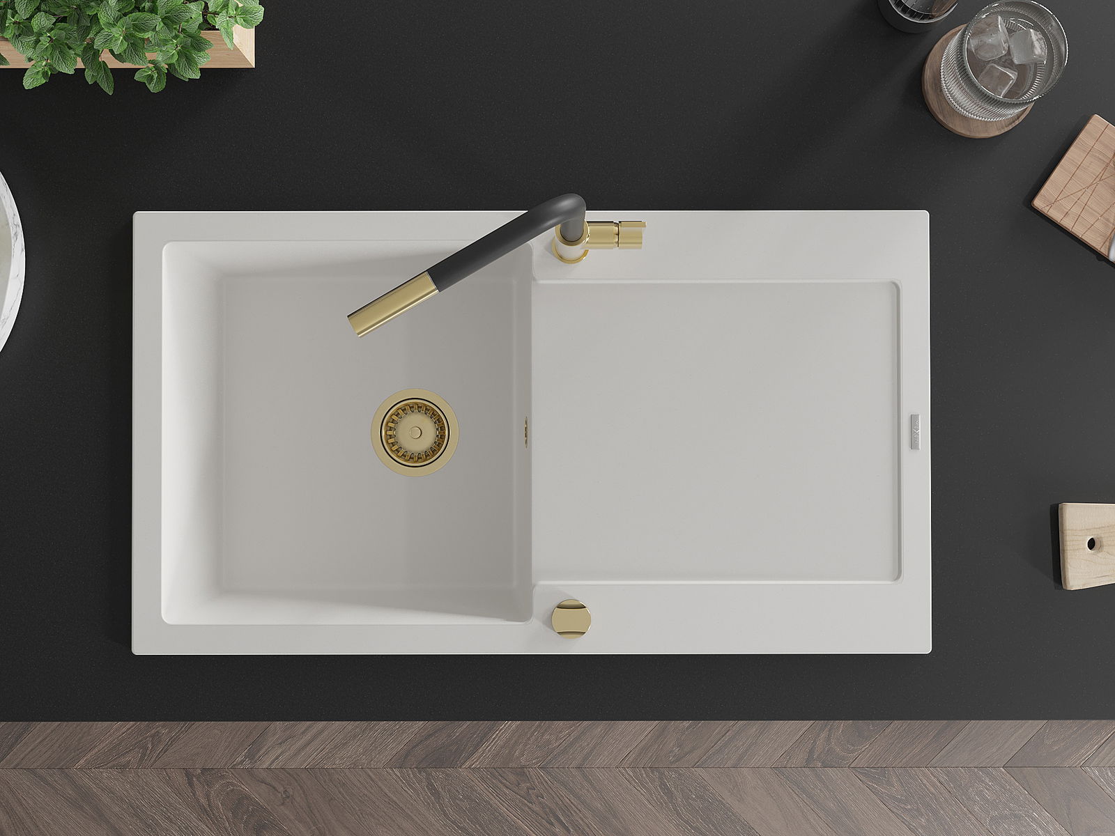 D'Uewerfläch vum Spullstee ass fleck- a verfärbungsresistent, wat se einfach ze botzen mécht an hir Faarf iwwer eng laang Zäit vum Gebrauch behalen léisst. Esthetesch an praktesch Ergänzung fir all Kichen.