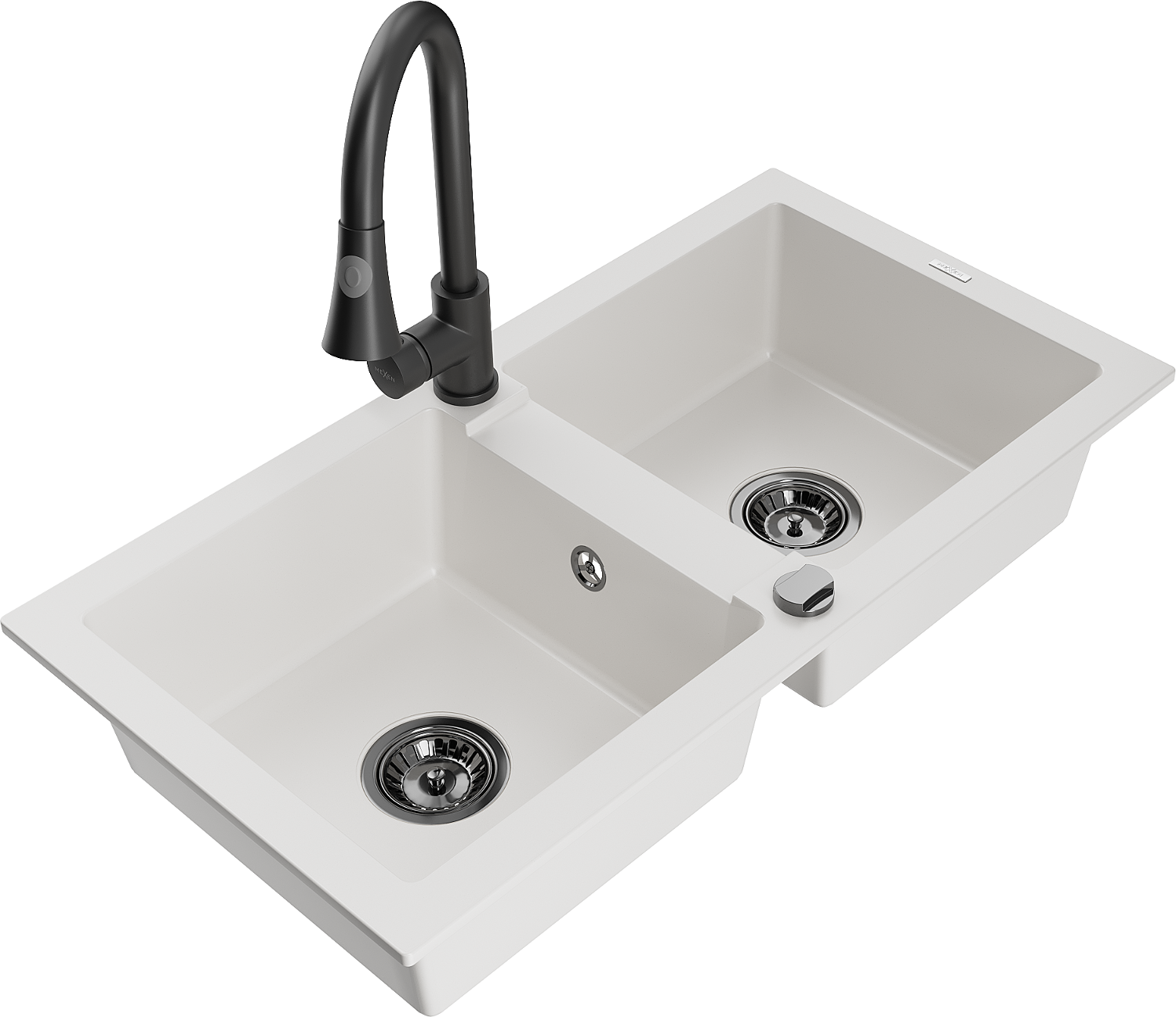 Mexen Mario 2-Kummer Granitt Spullsteen mat Elia Kichenkraan, wäiss - 6504-20-670101-70