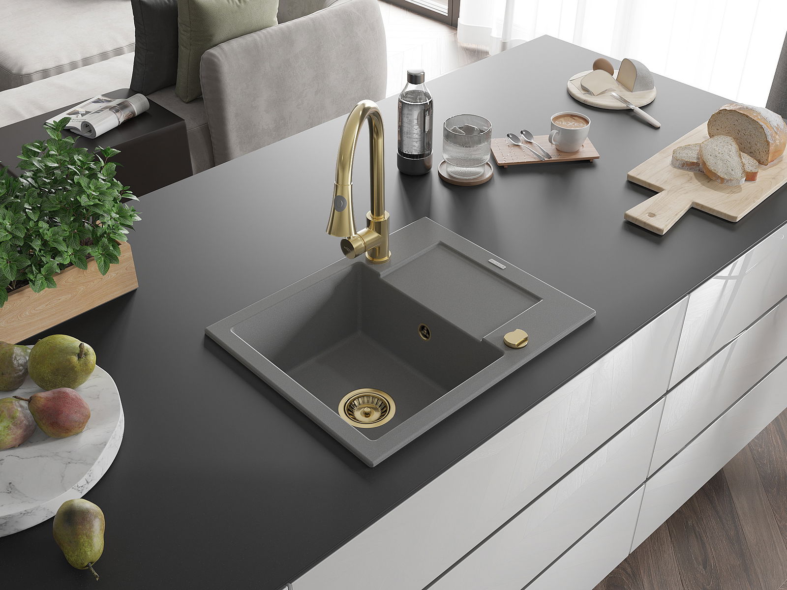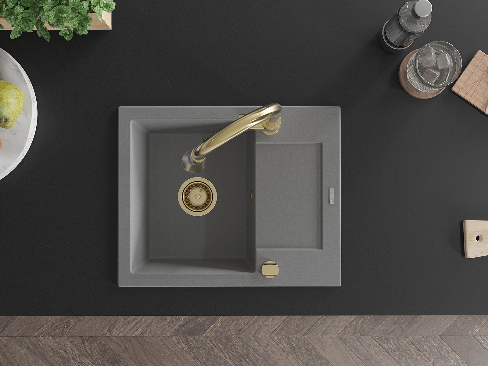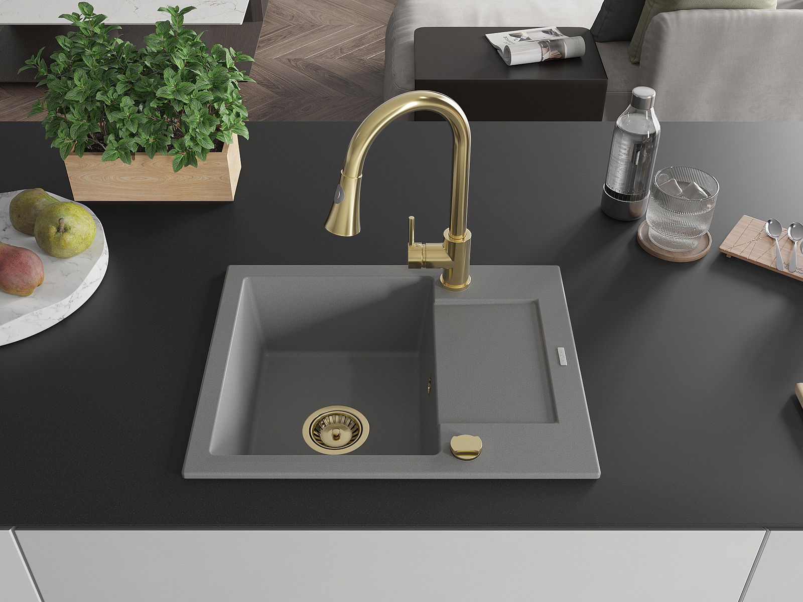 Mexen Enzo Granitte Spullsteen mat enger Schoss a kichenhunn Elia, gro - 6506-71-670101-50