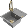 Den Ëmwäschbecken ass aus héichwäertege Granit gemaach. Et stellt eng elegant awer virun allem praktesch Ergänzung fir all Kichen duer, onofhängeg vun hirem Stil. Déi héich Qualitéit an Haltbarkeet vum Granit suergen fir méi järelaang Benotzung.
