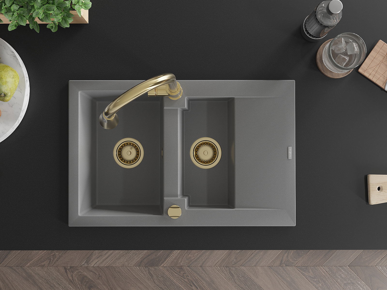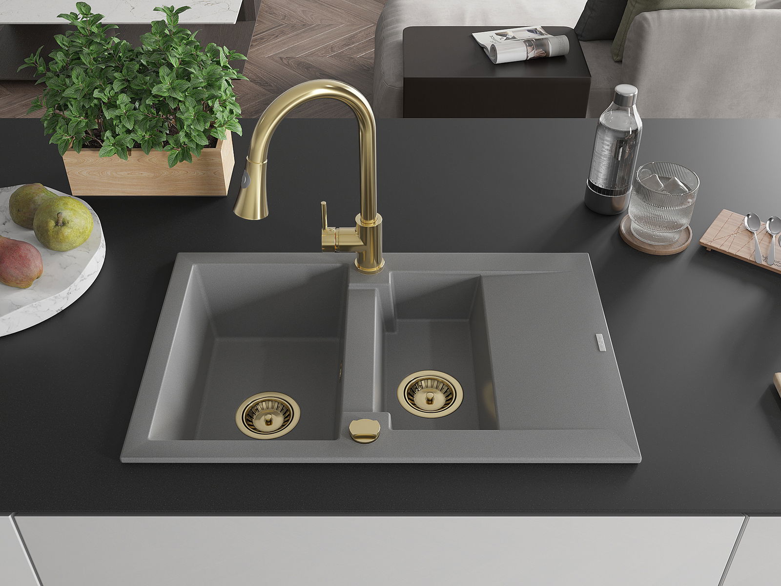 Mexen Gaspar 1,5-Komor Granitspull mat Uewäsch an Kichendass Elia, gro - 6507-71-670101-50
