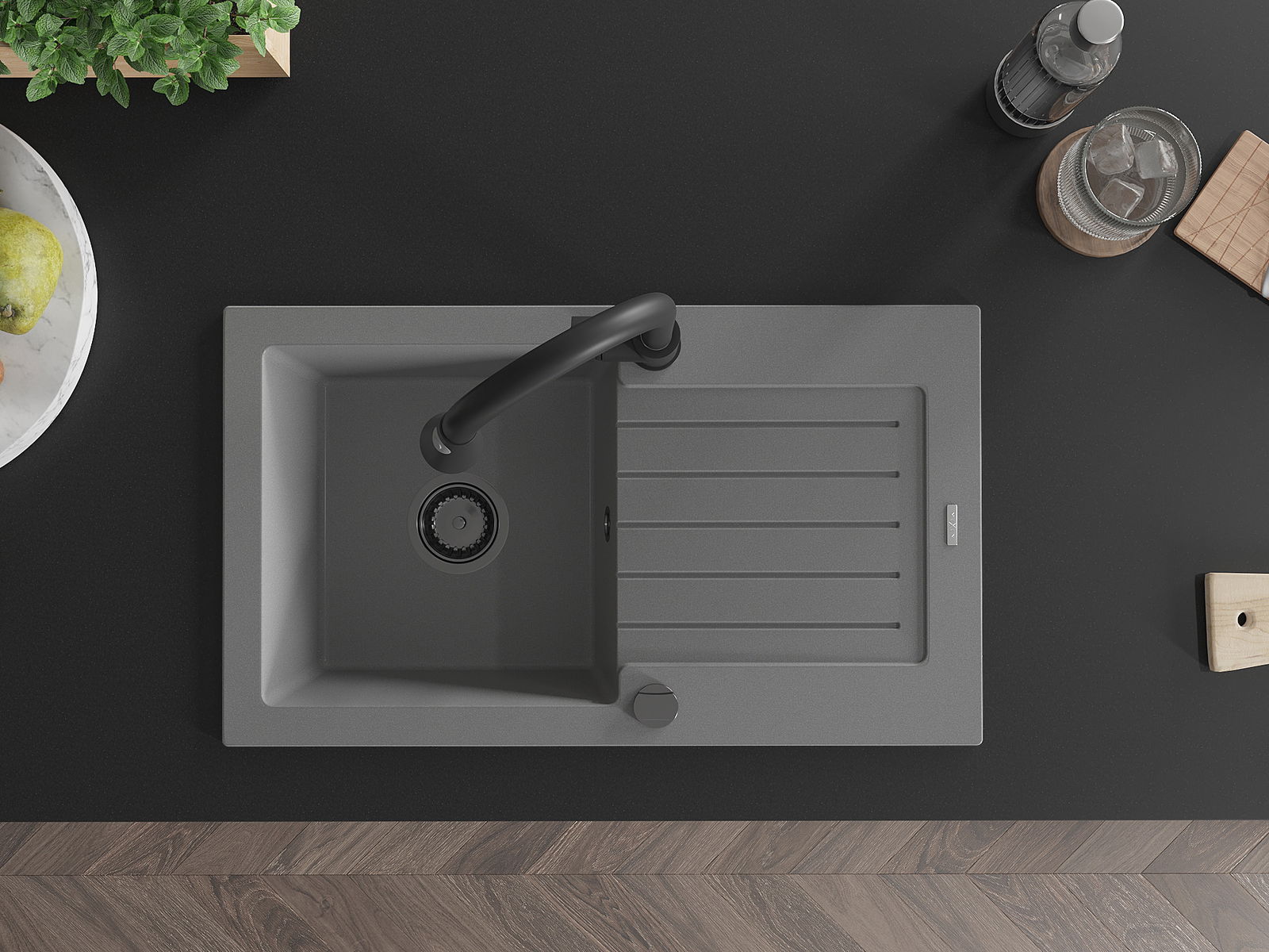 Mexen Pablo granitéiert Kichenzënk mat enger Schossel, ofléisend a Kichenkran Elia, gro - 6510-71-670101-70-B